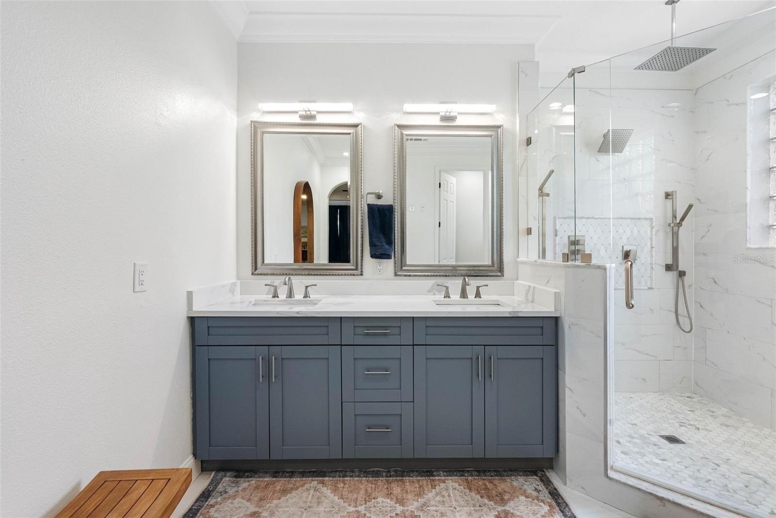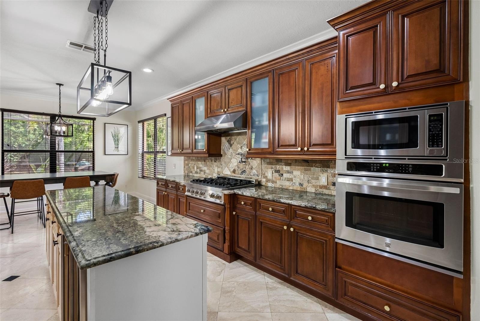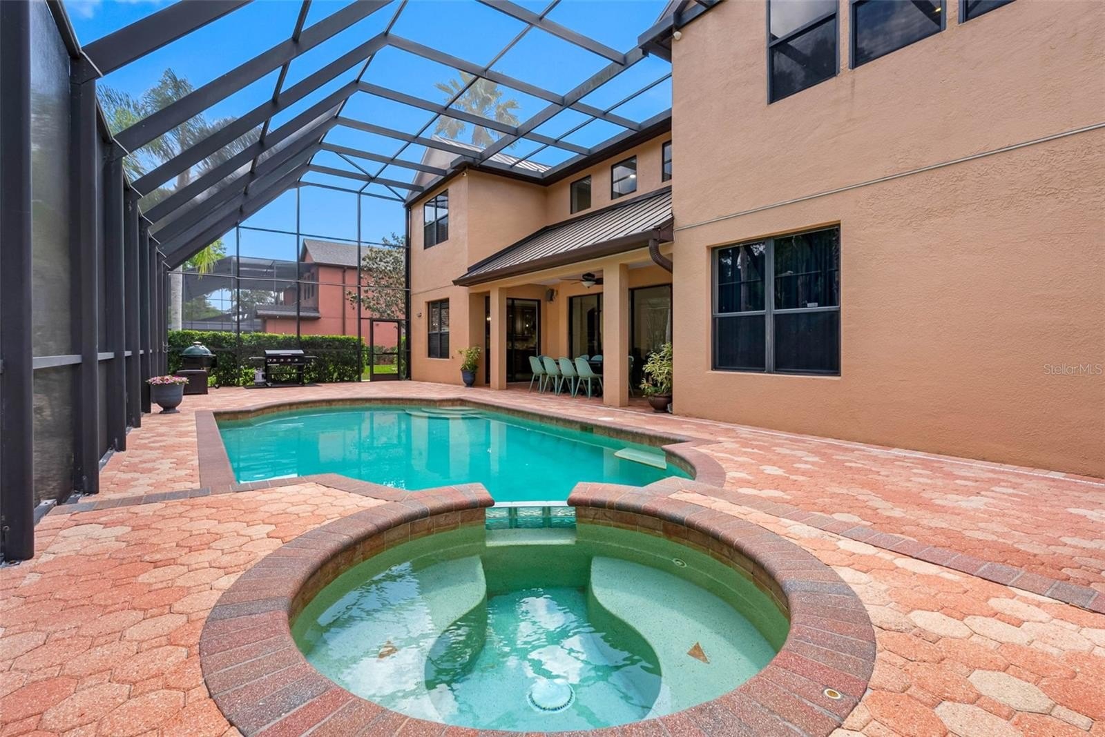 Oak Villa is a boutique luxury community located in the heart of Land O’ Lakes. This stunning Mercedes Homes Mediterranean-style estate sits on a private, oversized conservation lot and offers 6 bedrooms, 4 bathrooms, a bonus room, upstairs loft, and a 3-car side-entry garage. The thoughtfully designed floor plan blends spaciousness and functionality—perfect for both everyday living and entertaining. Upon entry, enjoy a thoughtfully designed formal living space reimagined with an expansive custom drop zone. From there is the expansive open great room that flows seamlessly to the large covered paver lanai and screened, heated pool with spa—ideal for enjoying Florida’s outdoor lifestyle. The expansive backyard provides additional space for recreation and relaxation. The main living areas feature travertine flooring, crown molding, and tray ceilings in the Master Suite and Formal Dining Room.The kitchen is well-appointed with granite countertops, a pass through, stainless steel appliances, propane gas range, and a stylish tile backsplash. The adjacent breakfast nook creates an inviting space for casual dining and gatherings. The great room includes a built-in entertainment center, while the formal dining room offers additional space for hosting. The downstairs guest suite is currently being used as an office - with access to a full bathroom for convenience. The primary suite is privately located on the main floor and features luxury vinyl flooring. The spa-like primary bathroom includes a garden tub, walk-in shower, dual vanities, and an expansive walk-in closet with custom built-ins. Upstairs, you’ll find four generously sized bedrooms with new carpet, two full bathrooms, a large bonus room, and a versatile loft—perfect for a home office, media space, or guest retreat. Additional features include a laundry room with built-in cabinetry and utility sink. Metal Roof installed 2023. New Pool Pump 2026. Complete interior painting 2024.Conveniently located near Highway 41, SR 54, I-75, and the Suncoast Parkway, this home is just minutes from dining, shopping, Tampa Premium Outlet Mall, medical facilities, hospitals, top-rated schools, parks, and everyday conveniences. A must-see to truly appreciate all this exceptional home has to offer.