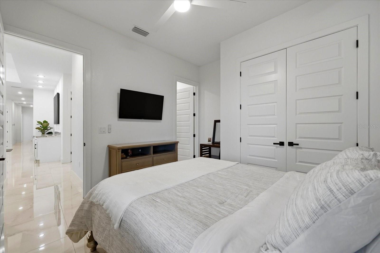 Each additional bedroom is generously sized with its own private bathroom, complemented by high ceilings and 8-foot interior doors throughout.