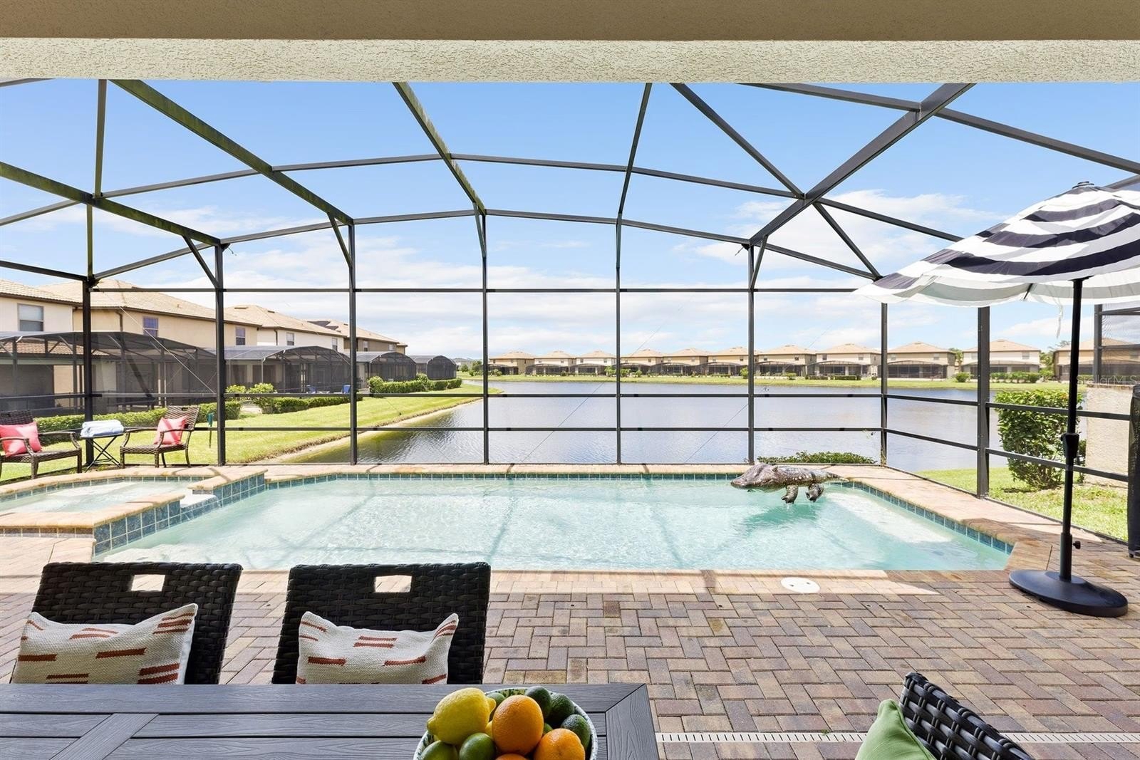 Step outside to your fully enclosed pool and spa with lake views, ideal for sun-soaked afternoons, poolside dinners, or evening relaxation. The home is fully furnished and move-in ready, making it an effortless turnkey option for a second home, vacation rental, or short-term rental investment.