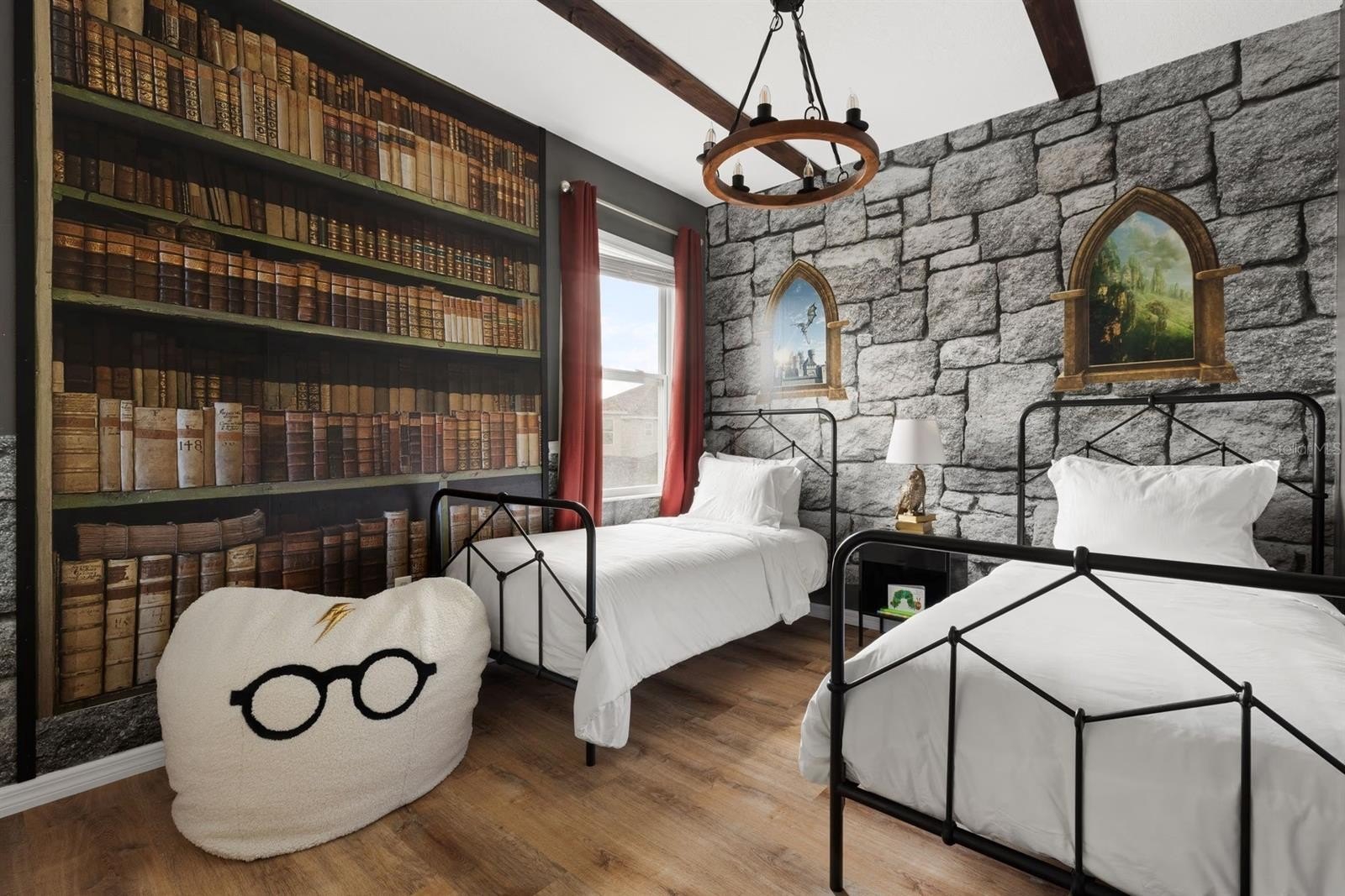 Designed for fun and function, the home features high 10’ ceilings, multiple living areas, and a main floor primary suite. The converted garage game room comes complete with arcade consoles and foosball, while upstairs includes a second primary suite, a bonus loft for movies or relaxation, and six spacious guest bedrooms—perfect for short-term rental groups.