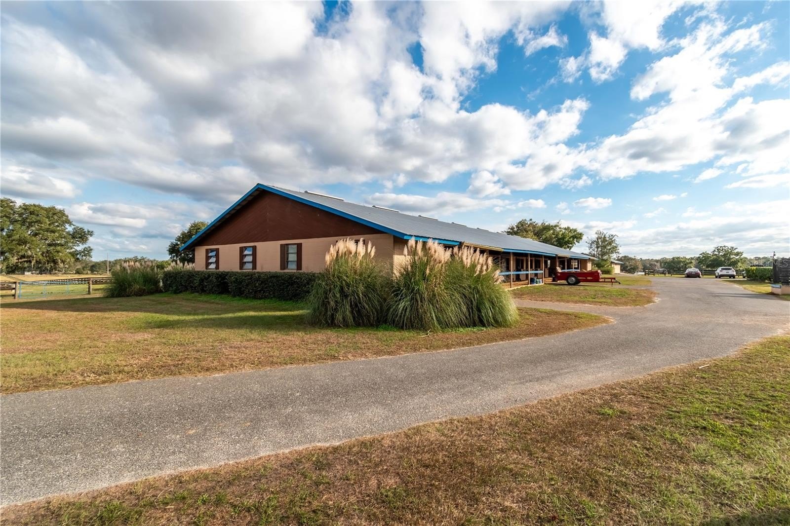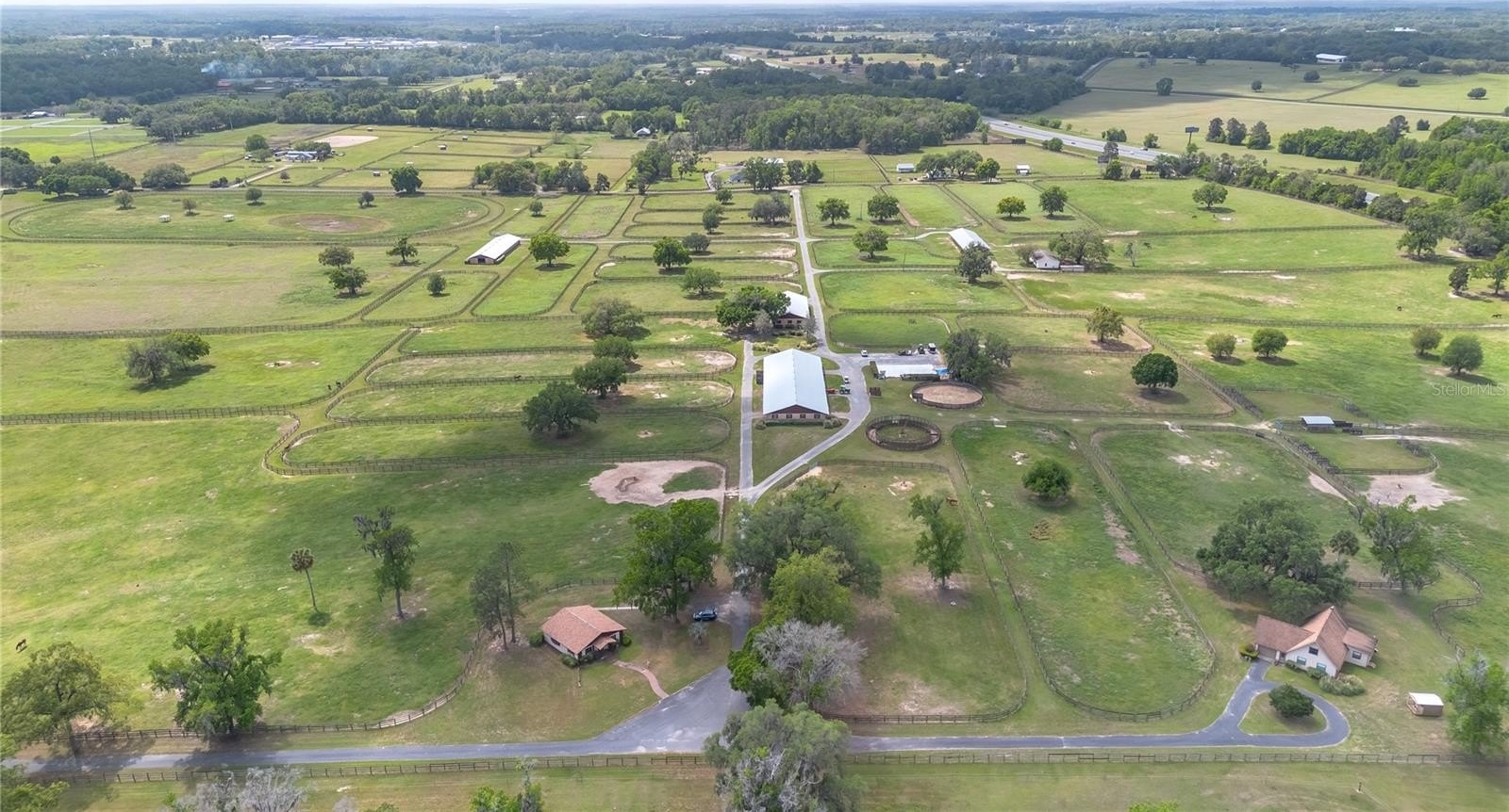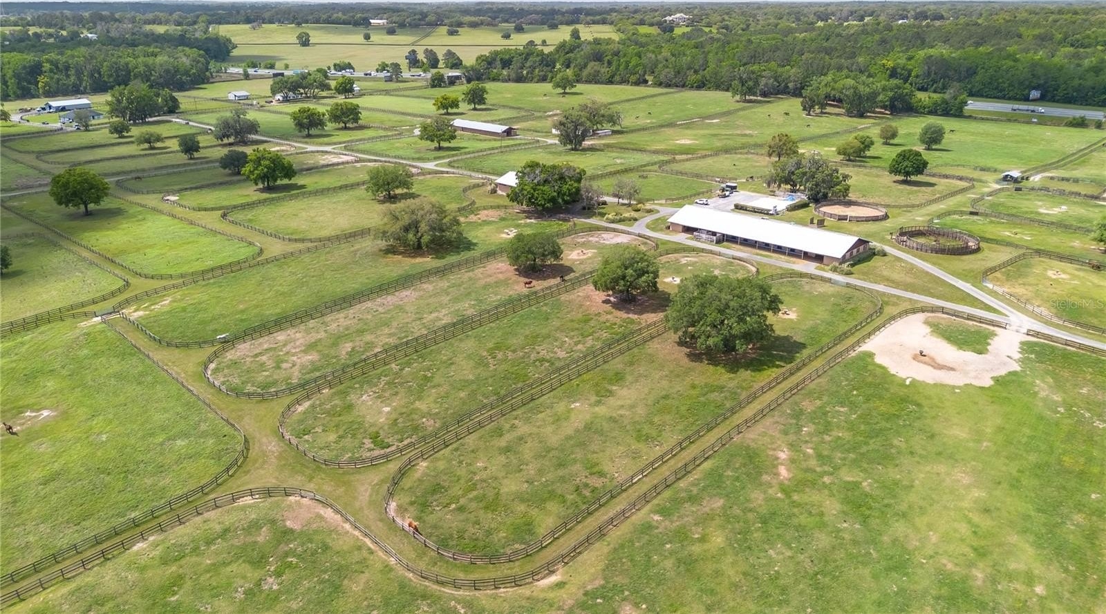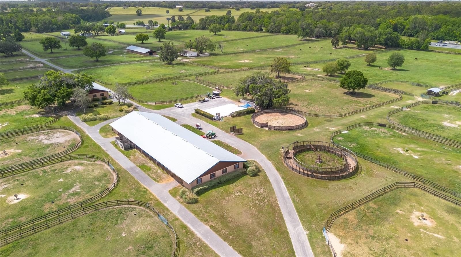 Equal parts elegant homestead and serious equestrian operation, this 50+/- acre farm offers the rare combination of refined living and top-tier horse facilities in the heart of Ocala's premier equestrian region. Just a short drive from both HITS and the World Equestrian Center (WEC) and minutes from Ocala and I-75, the location alone sets this property apart. Fenced and gated with a paved driveway, the property features rolling green pastures and paddocks stretch out in every direction, each thoughtfully designed to include their own mature oak trees for much needed shade. Two high-quality barns offer a combined 32 stalls, including a smaller 7-stall barn ideal for stallions or foaling. A eurocizer, round pen, and ample open space round out a training environment designed with serious equestrian operations in mind from start to finish. One well and two septics provide exceptional water access and operational capacity. The residence includes a warm, welcoming A-frame main home with vaulted ceilings, a stone fireplace, and sunlit gathering spaces. The open kitchen flows easily into the living and dining areas, while the primary suite on the main floor provides privacy and retreat. A separate office building supports business operations, and could easily be converted for use to an additional residence or continued to be used for business. For the buyer seeking a true equestrian estate where impressive infrastructure and room to grow all come together, this is a one-of-a-kind offering in one of Florida's most celebrated horse communities. For those looking for higher acreage and additional residential options, barns, and more, OM722441 offers an additional 50+/- acres purchase directly next door.