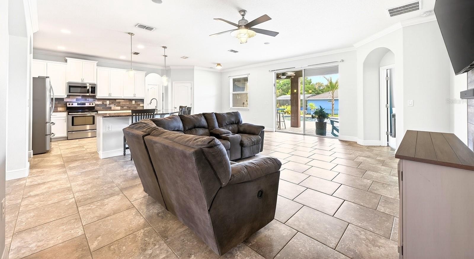 Seller may consider buyer concessions if made in an offer ~ Freshly updated and MOVE-IN READY, this single-story 5-bedroom POOL HOME sits on a spacious .43 ACRE ~ CORNER LOT in the sought-after Rock Springs Ridge community of Apopka – offering the space, privacy, and outdoor lifestyle you have been searching for! **IN 2026** FRESH INTERIOR PAINT in the primary suite, living areas, and front bedroom **IN 2025** Decorative ACCENT WALL added in the primary bedroom, upgraded faucets in the primary bath **IN 2021** TILE FLOORING added to the primary bedroom and closets ** IN 2020** CROWN MOLDING added throughout the main living areas and primary bedroom, CUSTOM KITCHEN BACKSPLASH, and decorative accent walls in the living room and guest bedroom. From the moment you arrive, the 3-CAR GARAGE, mature landscaping, and oversized corner lot set the tone. Inside, the home feels light, open, and welcoming with a flowing layout designed for both everyday living and entertaining. The kitchen is centrally located with UPDATED STAINLESS STEEL APPLIANCES (all recently replaced except the stove), a custom backsplash, and easy connection to the main living and dining spaces. The PRIMARY SUITE is tucked away at the back of the home for privacy and features updated finishes, tile flooring, a decorative accent wall, and a spacious en-suite bath. With five true bedrooms, there is flexibility for guests, a home office, or multi-generational living. Step outside and the Florida lifestyle really shines – your BACKYARD RETREAT is FULLY FENCED and designed to enjoy year-round. Relax by the POOL, entertain at the TIKI BAR (included!), or gather around the custom FIRE PIT on a concrete slab. Concrete curbing and thoughtful landscaping complete the tropical feel, creating a space that truly feels like your own private escape. Additional highlights include a TESLA EV CAR CHARGING STATION and laundry room cabinetry for added storage. Rock Springs Ridge is known for its quiet, established feel, GOLF COURSE access, TRAILS, and proximity to everything Apopka has to offer. Zoned for top-rated schools – including the new KELLY PARK K-8 nearby – and just minutes to SR 429, shopping, dining, the Northwest Recreation Complex, Wekiwa Springs State Park, and Lake Apopka. A rare combination of space, updates, and outdoor living all on one level – this one checks all the boxes. Call today to schedule your tour!