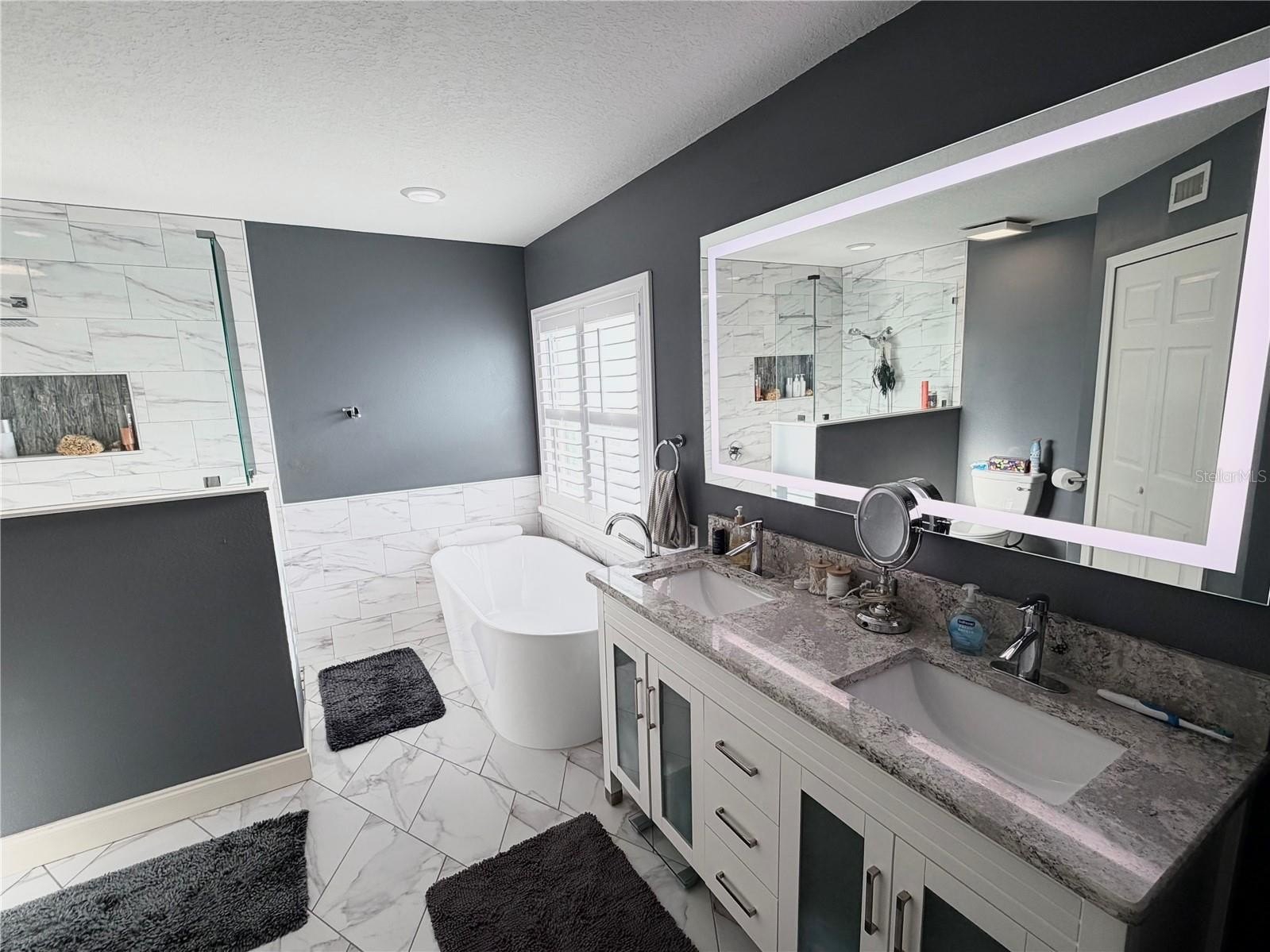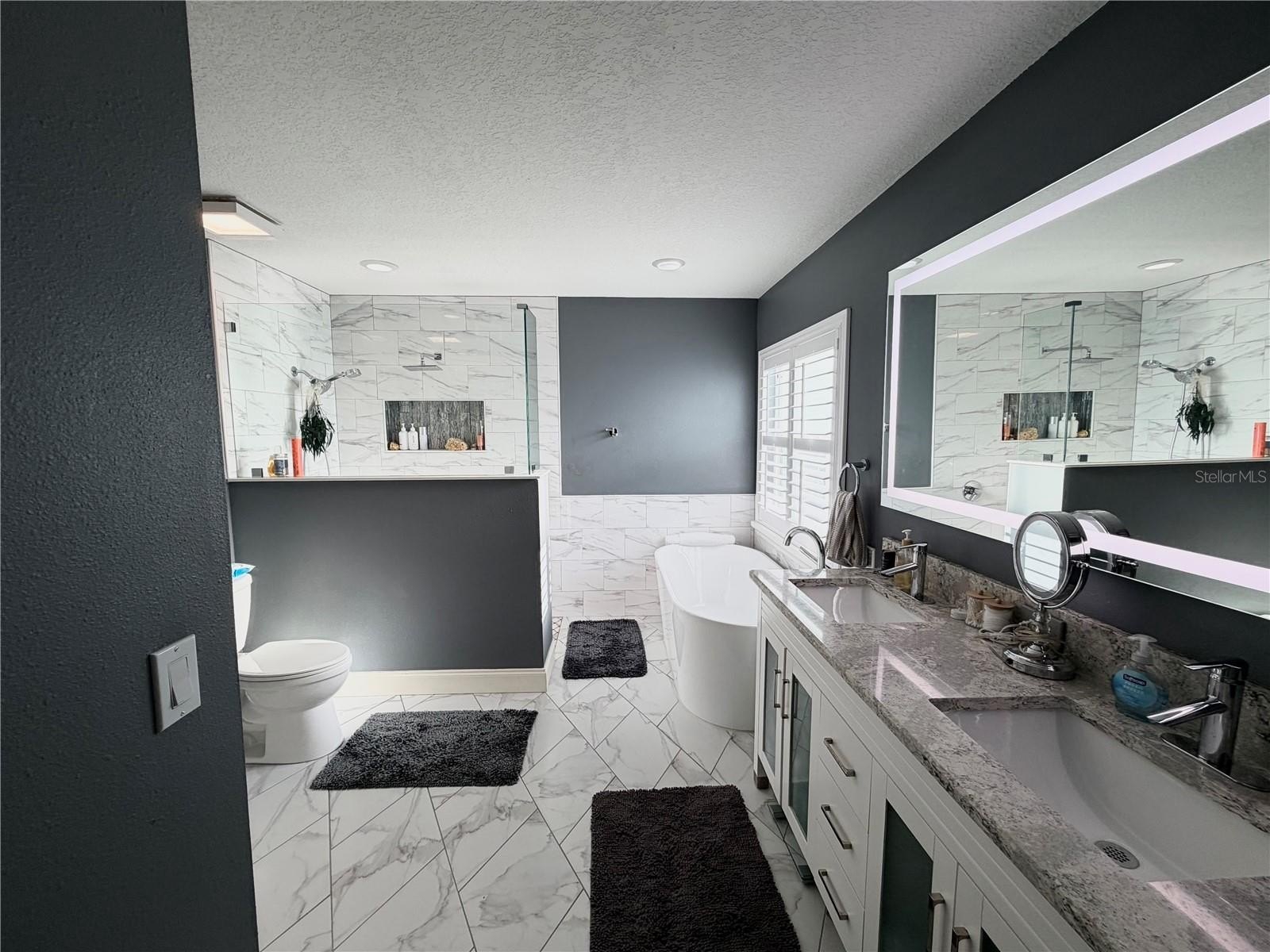 The spacious main-level primary suite is a true retreat. It features private access straight out to the pool, a luxurious ensuite bath with a double vanity, deep soaker tub, stunning tiled shower with double shower heads, and a large walk-in closet. It’s the kind of primary suite you’ll never want to leave!