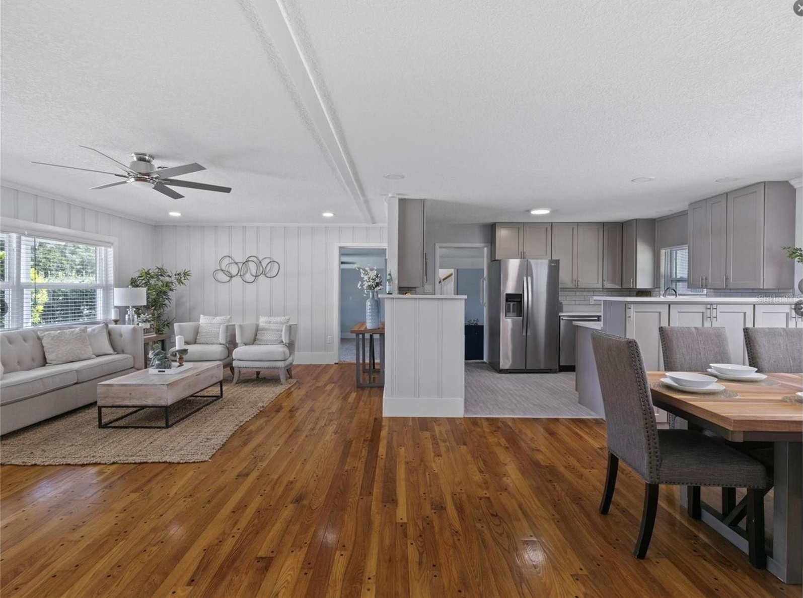 The interior showcases a refined yet comfortable design with an open-concept layout, four bedrooms, and thoughtfully updated living spaces. A beautifully appointed kitchen features custom cabinetry, quartz surfaces, and premium appliances, while restored hardwood flooring adds timeless character throughout.