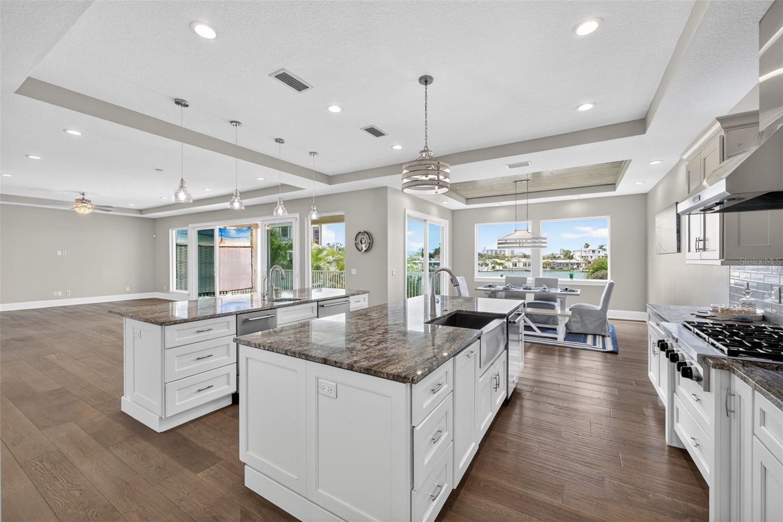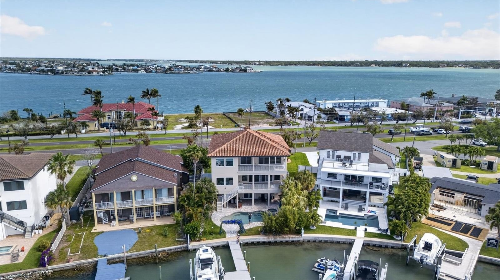 Magnificent, luxurious waterfront coastal home on Paradise Island, right off the intercoastal on Boca Ciega Bay. Designed by renowned architect Scott Hines and completed in May 2019, this gorgeous home has four full en-suite bedrooms and three covered balconies overlooking a scenic, dolphin-filled bay, complete with a dock that extends 40 ft into the water and a heavy-duty, high-speed 13,000-pound Neptune boatlift. Boat to the Gulf for awe-inspiring sunsets in minutes or walk five blocks to the white sand beaches of Treasure Island for swimming, sunbathing, and drinks on the beach (The Jeanneau French-made boat is available for purchase). The home’s ground level includes a huge 4- to 5-car garage with an electric-car charging port and plenty of space for tools, art projects, or table tennis. Nights are lit by high-end landscape yard lights and LED multicolor in the heated Pebble Tec saltwater pool and hot tub. Grill the fish you catch on your dock in a high-end outdoor kitchen, equipped with a FireMagic oversized grill and refrigerator, plus a sink, and a granite countertop. Watch sports or movies from the hot tub or the kitchen table on the high-end Samsung Terrace-brand TV. Take the stairs or elevator to the second level, where you will step into an open-concept space with a superb Chef's Kitchen to the right that features custom solid hardwood cabinetry, designer luxury countertops, Kitchen-Aid appliances, 2 Islands and a Wine/Beverage Center, including an Ice Maker, two dishwashers, and a butler’s pantry, that completes the masterpiece kitchen. To the left, set up your family space for watching TV or for a panoramic view of the water through the 4 glass sliding doors leading to your luxurious covered patio. The level includes a breakfast area off the kitchen, and a bonus room that may be a formal dining room or an office. A half bath is in this space. One en-suite bedroom with a beautiful water view of Boca Ciega Bay completes the second level. Take the elevator or stairs up to the third floor to find three more en-suite bedrooms, all with amazing water views. One is complemented by floor-to-ceiling cabinets and shelves, making it an excellent work-from-home office. Two of the bedrooms open to a large, covered patio with engaging water views. And in the middle of the floor, enjoy a large bonus room for a “man’s cave” or crafts room, that also opens to the balcony. Enjoy privacy with the high-end custom Hunter Douglas drapes/blinds. The majestic master suite boasts stunning water views from both sides, separate his/her closets, and an exquisite master bath with a spacious custom shower and an elegant soaking tub. Enjoy natural stone, hardwood, and Italian porcelain flooring, designer fixtures, and spectacular architectural appointments throughout your new home. The home is freshly painted inside and outside. The property is protected from flooding by new state-of-the-art flood panels and a new seawall. The house has a whole-home water filtration system and a drinking water filter in the kitchen. Come visit this exceptional waterfront home with its modern design and breathtaking views, elegant finishes, and supreme outdoor living spaces! Walk out on your dock and look up at the planets and be kissed by the bright stars at night. Imagine swimming with the dolphins off your private dock and paddleboarding from cove to cove. You’ll soon be living in paradise, on Paradise Island, just off the coast of St. Petersburg, Florida.