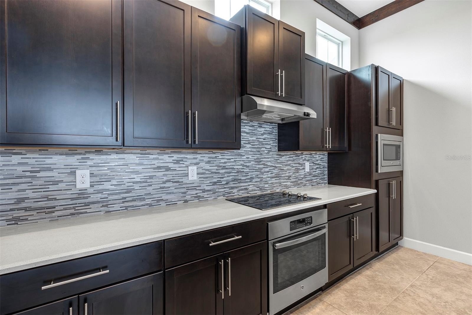Discover elevated living in the highly sought-after Laureate Park community with this beautifully upgraded 2-bedroom, 2-bath townhome! Designed with style and comfort in mind, this home features soaring 12-foot ceilings in the main living area accented by striking exposed wood beams, creating a bright and airy atmosphere throughout the open-concept living space. A standout design feature is the custom wall inlay in the main living area—perfectly designed for mounting a TV—adding a sleek, built-in focal point that enhances both function and style. The thoughtfully designed layout offers abundant natural light and ample room for entertaining, seamlessly connecting the living, dining, and kitchen areas. The kitchen is beautifully appointed with an upgraded island extension, offering additional prep space and seating—perfect for hosting and everyday living. Both bedrooms provide a comfortable retreat with newer Berber carpet, while the custom-built closet adds a touch of luxury and functionality. An additional flex space offers versatility, perfect for a home office, den, or creative studio. Step outside to enjoy a charming second-floor balcony overlooking a peaceful courtyard, or unwind on the spacious front porch—ideal for relaxing evenings.