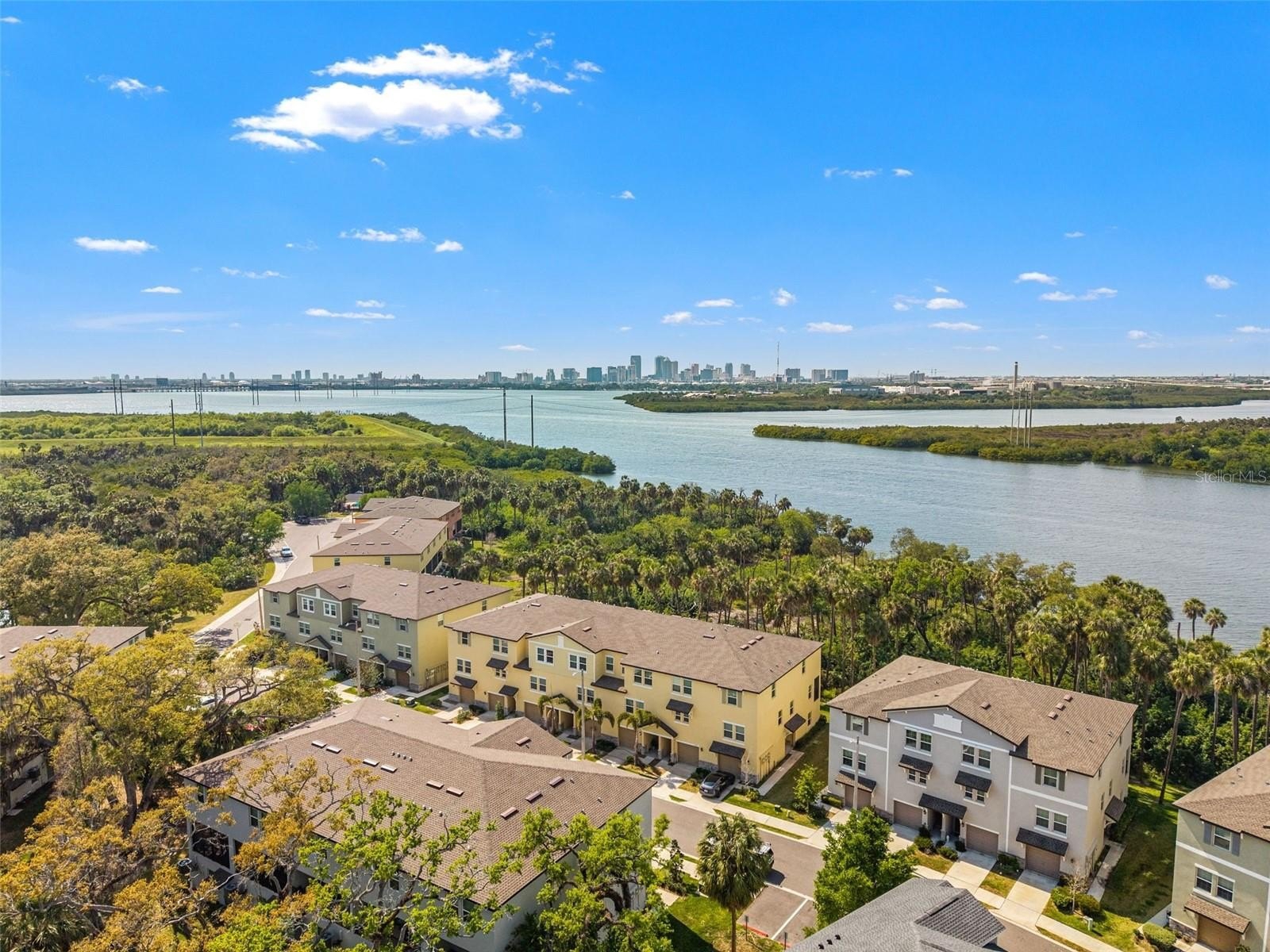 Enjoy the sunset views from your balcony and a 14 minute drive to Downtown Tampa and scenic Bayshore Blvd! This 2023 built bright corner-unit townhome is ideally situated within a gated community backing up to conservation and offering direct access to McKay Bay. Designed for both comfort and functionality, this three-story residence offers 3 bedrooms, 3 full bathrooms, a versatile loft, and a one-car garage. Step inside to a welcoming spacious foyer with convenient garage access. A unique feature of this unit is a large 17' x 21' storage area—perfect for bikes, kayaks, and all the things — note that this space is not included in the home’s square footage. The second level showcases a bright, open-concept layout featuring white kitchen cabinetry, a cozy coffee nook and convenient seating at the kitchen island. The space flows seamlessly into the dining area and spacious living room, all enhanced by beautiful engineered HARDWOOD flooring throughout the unit—no carpet. Step out onto the balcony to enjoy your morning coffee or unwind while taking in peaceful views. A guest bedroom and full bath on this level provides privacy for visitors or can be an ideal home office. The third floor offers a private retreat with a generously sized primary suite, a custom built-out walk-in closet, an additional bedroom, a full bath, a laundry room, and a loft space ideal for a media area, office, or lounge. Residents enjoy community amenities including a pool and a canoe/kayak launch with a floating dock. The HOA covers gated access, cable, internet, lawn care, exterior maintenance, and water for truly low-maintenance living. Set in a tranquil setting yet conveniently located near major highways, shopping, and dining, this home offers the perfect balance.