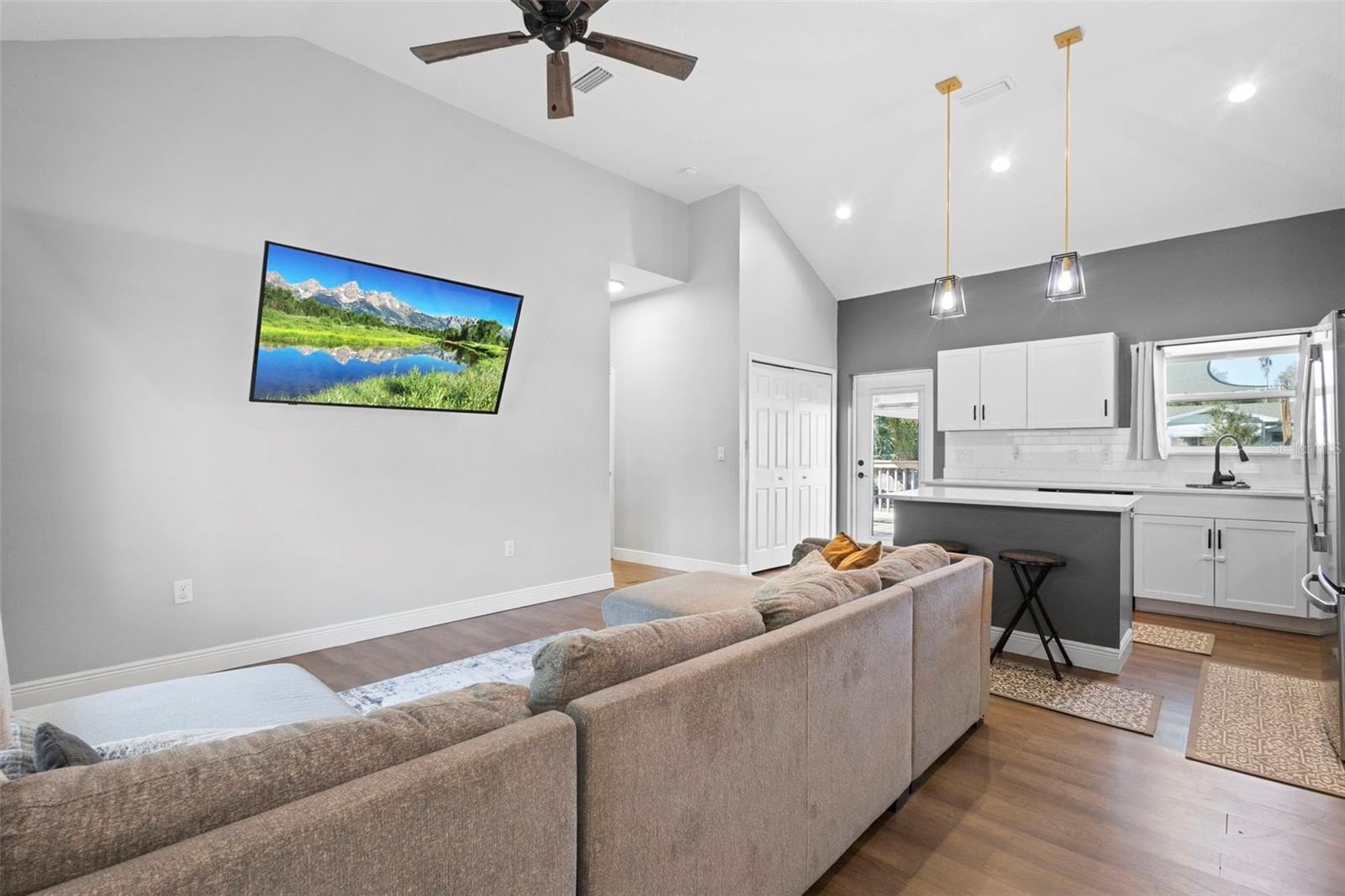 Located in the heart of DeLand this home was completely renovated in 2023 blending mid-century charm with modern convenience. Built in 1952 and situated on a generous 0.23-acre lot, this property offers a rare opportunity to own a turnkey home just minutes from Historic Downtown DeLand and Stetson University. The front door opens into a spacious, light-filled living and kitchen area featuring high ceilings. Gourmet Kitchen is equipped with quartz countertops and modern stainless-steel appliances. Functional Layout with one side of the home containing two bedrooms and 1.5 baths, while the other side features a private bedroom and full bath. The backyard features a large wood deck and mature palm trees, offering ample space for a fire pit or playground. Just blocks away from local shopping, medical centers, and the award-winning restaurants of downtown DeLand. Conveniently located near I-4 for easy access to Lake Mary, Orlando, or Daytona Beach.