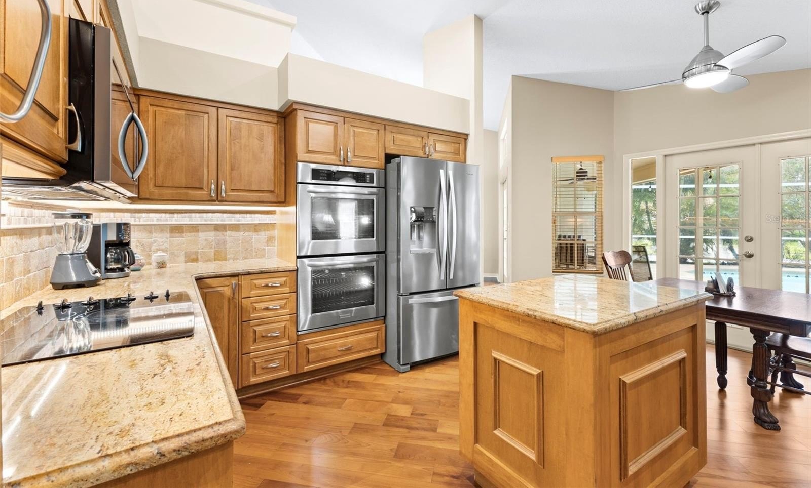 Welcome to an exceptional pool residence in one of Palm Harbor’s most coveted locations, where refined design and thoughtful upgrades create a sophisticated yet inviting living experience. This impeccably maintained 3 bed, 2.5-bath home offers a seamless blend of elegance, comfort, and functionality. Upon entry, you’re welcomed by a versatile front living space—beautifully suited as a private office, formal sitting room, or refined entertaining area. The formal dining room is graciously positioned adjacent to the kitchen and enhanced by French doors that open to the covered lanai, extending your living space outdoors. Privately situated, the primary suite serves as a serene retreat with direct lanai access through sliding glass doors. The suite is complemented by a spacious walk-in closet, an additional wall closet, and a stunningly renovated spa-inspired bath. Thoughtfully designed, the bath features dual vanities with abundant storage, a dedicated vanity space, an oversized walk-in shower with a built-in bench, & a private water closet—creating a true sanctuary for relaxation. At the heart of the home, the kitchen is both stylish and highly functional, opening to a charming breakfast nook with French doors leading to the lanai. Appointed with a center island, breakfast bar, built-in desk station, & generous cabinetry, the space is designed to accommodate both everyday living and effortless entertaining. A conveniently located pantry and nearby coat closet further enhance the home’s thoughtful layout. The adjoining family room is filled with natural light & anchored by a floor-to-ceiling brick fireplace. Pocketing sliding doors create a seamless indoor-outdoor transition, elevating the home’s connection to its outdoor living spaces. The secondary bedrooms are thoughtfully positioned on the opposite side of the home, offering both privacy & comfort. One features a walk-in closet, while the other offers a generously sized wall closet, with a well-appointed full bath conveniently serving this wing. Step outside to your private outdoor oasis—a beautifully maintained, screen-enclosed pool surrounded by ample covered space for lounging and dining. Designed with convenience in mind, the outdoor area also features a dedicated poolside half bath & an outdoor shower. Additional highlights include a laundry room with enhanced storage, a folding station with overhead hanging space, a utility closet, & direct garage access. The home is ideally situated on an expansive corner lot of over a quarter acre. Recent upgrades enhance both efficiency and peace of mind, including a fully owned whole-house solar system (2024), a new roof (2024), EV charging capability, updated HVAC ductwork and attic insulation, as well as fresh interior and exterior paint complemented by updated window treatments and designer door hardware (2023). Major systems include HVAC (2019), water heater (2018), and impact-resistant windows and doors (2014), while the primary bath renovation, completed in January 2025, showcases elegant finishes and granite countertops. Ideally located just moments from Honeymoon Island State Park, this residence offers convenient access to award-winning beaches, upscale dining, boutique shopping, and easy connectivity to Tampa and surrounding areas. Impeccably updated and truly move-in ready, this home embodies the very best of elevated Florida living. Schedule your private showing today and experience it firsthand.