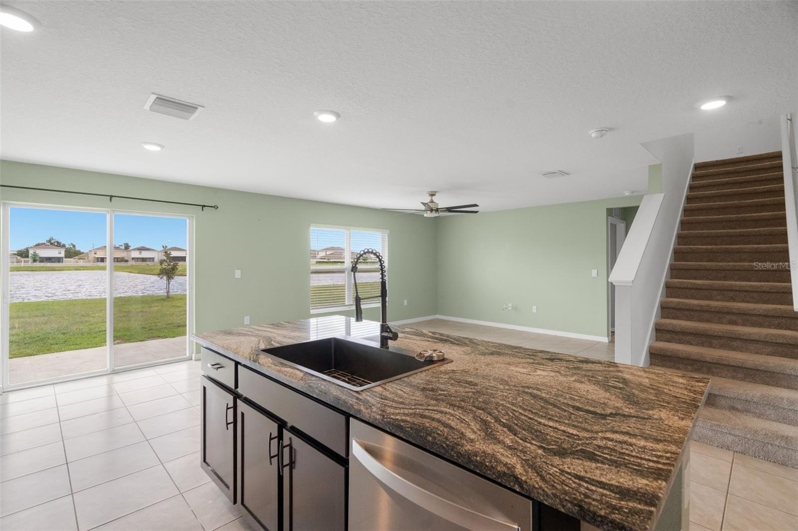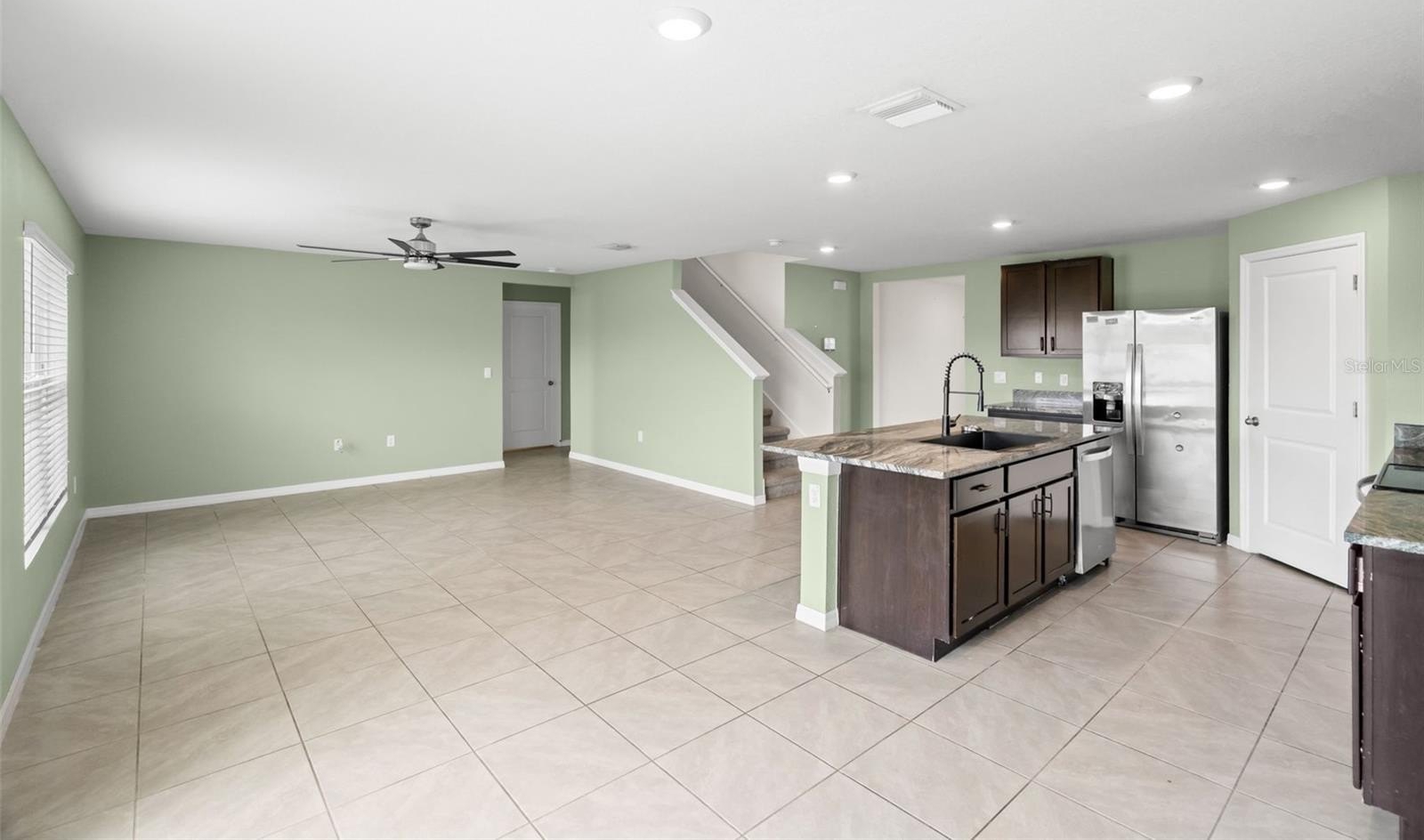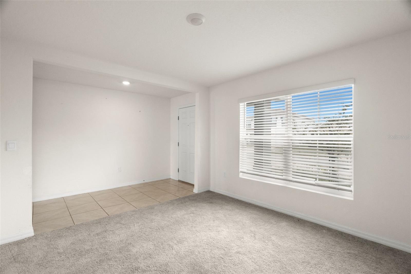 The open concept floor plan features a bright and airy great room, seamlessly connecting to the modern kitchen equipped with granite countertops, stainless steel appliances, and ample cabinetry, perfect for both everyday living and entertaining. Durable ceramic tile flooring enhances the main living areas, while plush carpeting adds comfort to the bedrooms.