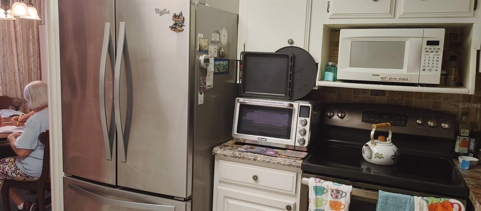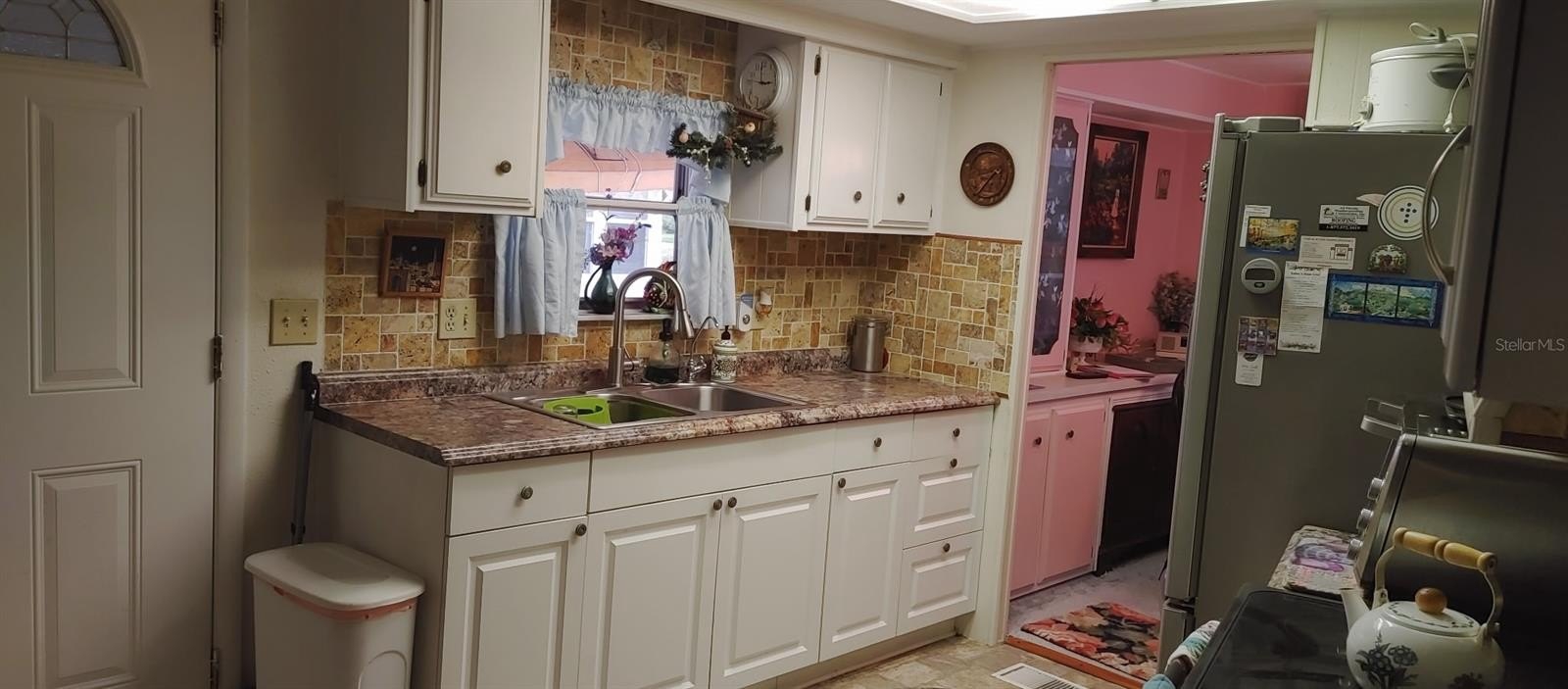 Inside, the thoughtfully enhanced kitchen blends style and functionality with stainless steel appliances, upgraded countertops, and crisp white cabinetry. A reimagined layout introduces an inviting breakfast nook complete with additional counter space, custom cabinetry, and premium pull-out storage—creating a seamless flow for both everyday living and entertaining.