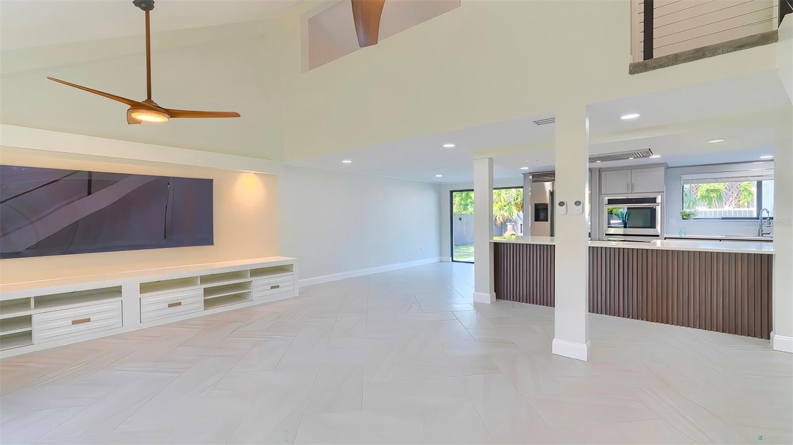 Inside, you’ll find a bright open-concept layout designed for both everyday living and entertaining. The stunning kitchen serves as the centerpiece of the home, featuring a sleek waterfall-edge island, a spacious 33-inch sink, wall oven, and a built-in refrigerator—perfect for anyone who loves a clean, modern aesthetic.