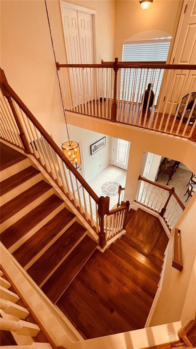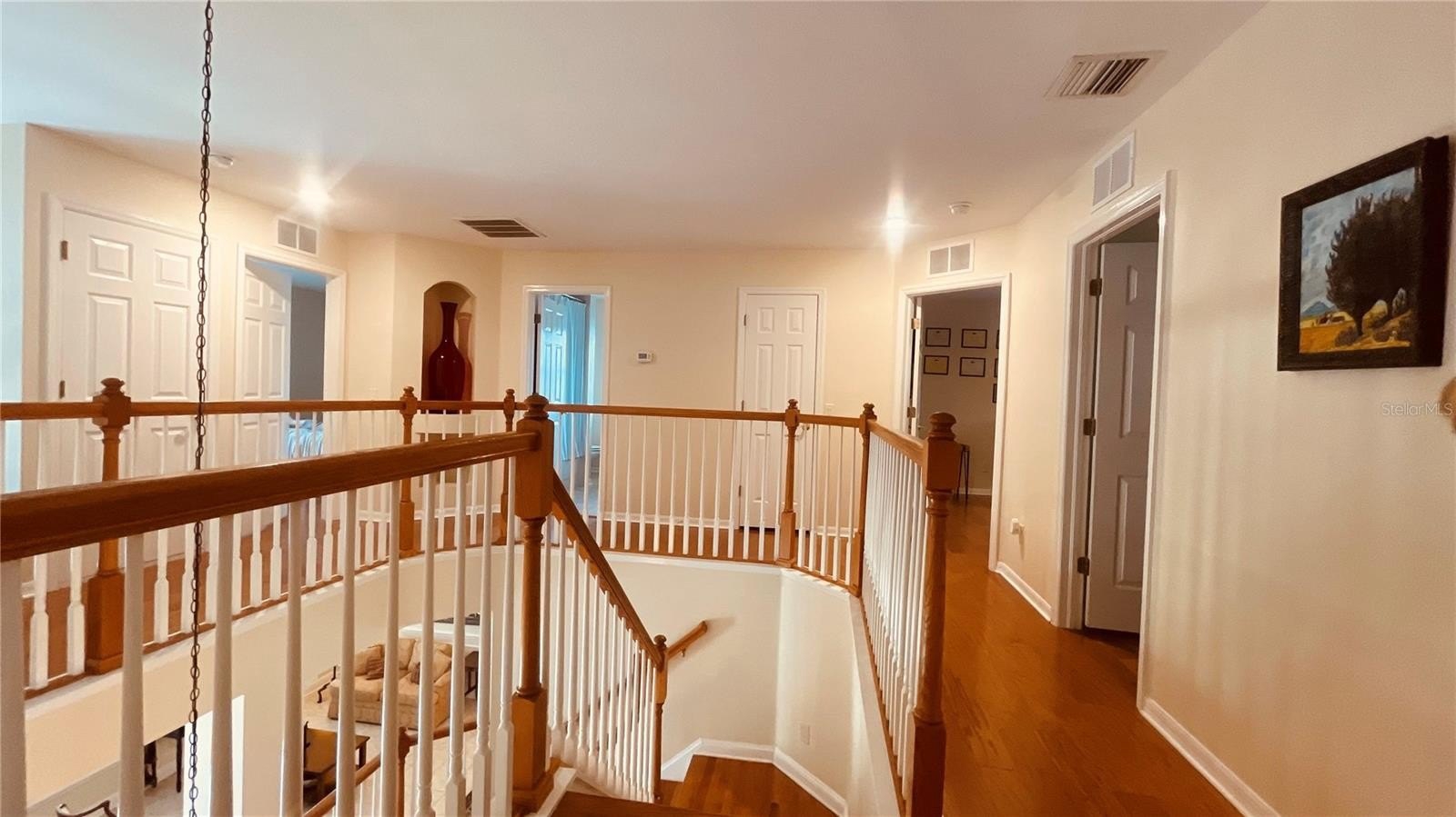 The second level also features wood flooring installed in 2025, including the staircase, along with abundant storage and a walk-in storage closet. The media room is pre-wired for audio/visual equipment with ceiling speaker connections, and a full home theater system with projector and screen was installed in March 2021.