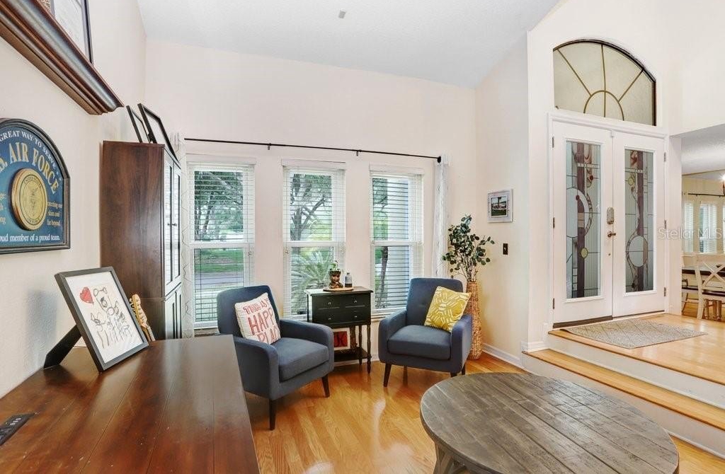 Elegant 4-bedroom, 3-bathroom estate located in the highly desirable Wyndham community within Tampa Palms. From the moment you enter through the custom front door, you’re welcomed by rich wood flooring and a thoughtfully designed layout that blends comfort with upscale living.