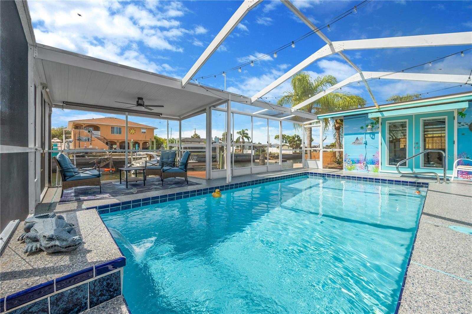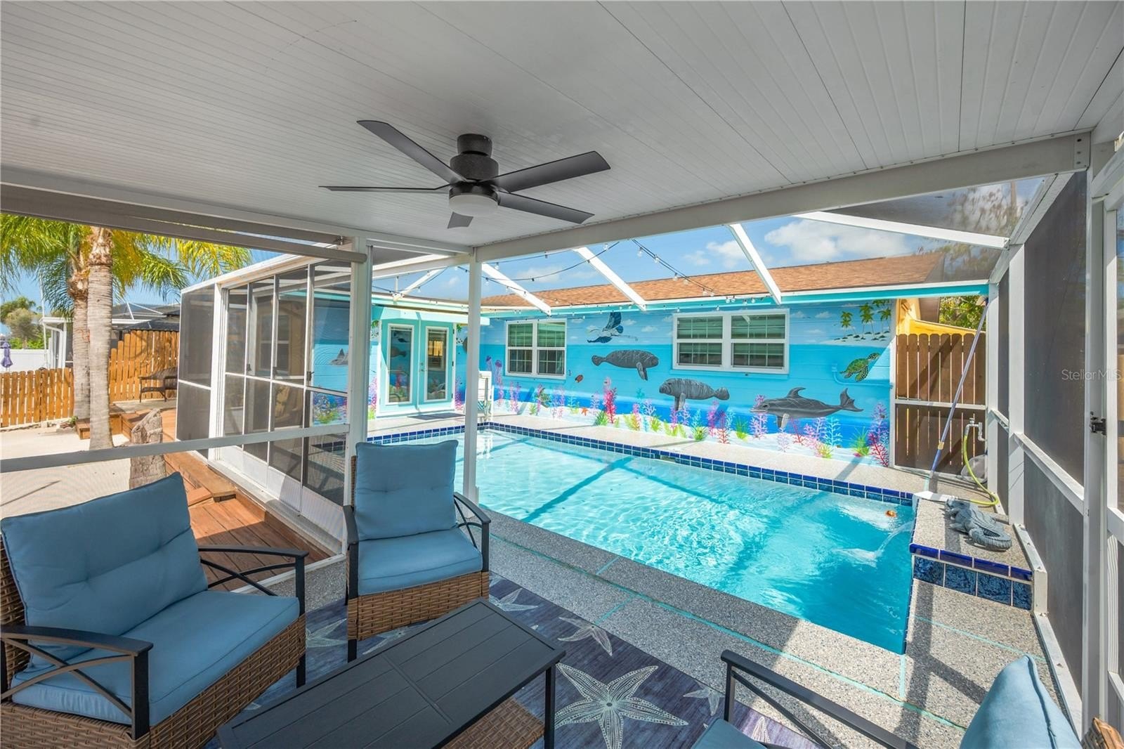 Enjoy a private outdoor oasis with a 12' x 22' inground cement pool (3'–5' depth) inside a screened enclosure and a spacious deck perfect for gatherings and entertaining. Inside, the home offers a bright coastal feel with solid oak interior doors, many new windows and window treatments, updated flooring, and tastefully selected beach-themed furnishings. The home is offered fully furnished, making it truly turn-key.