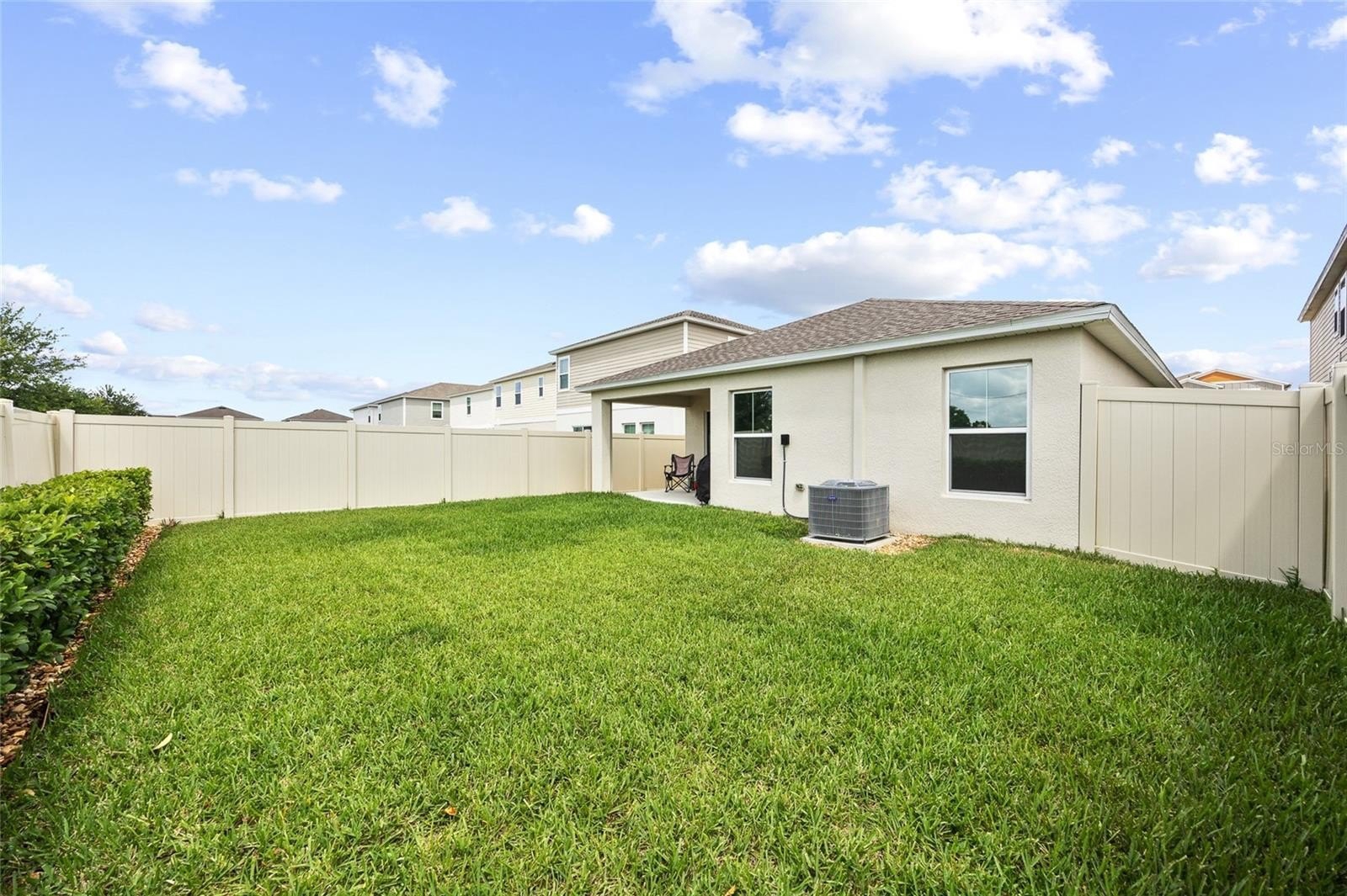 Step outside to a fully fenced backyard with a west-side gate, upgraded irrigation system with added backyard coverage, and professionally enhanced landscaping. The exterior showcases fresh curb appeal with upgraded St. Augustine grass in both front and back yards, a river rock footpath on the west side, and exterior lighting.