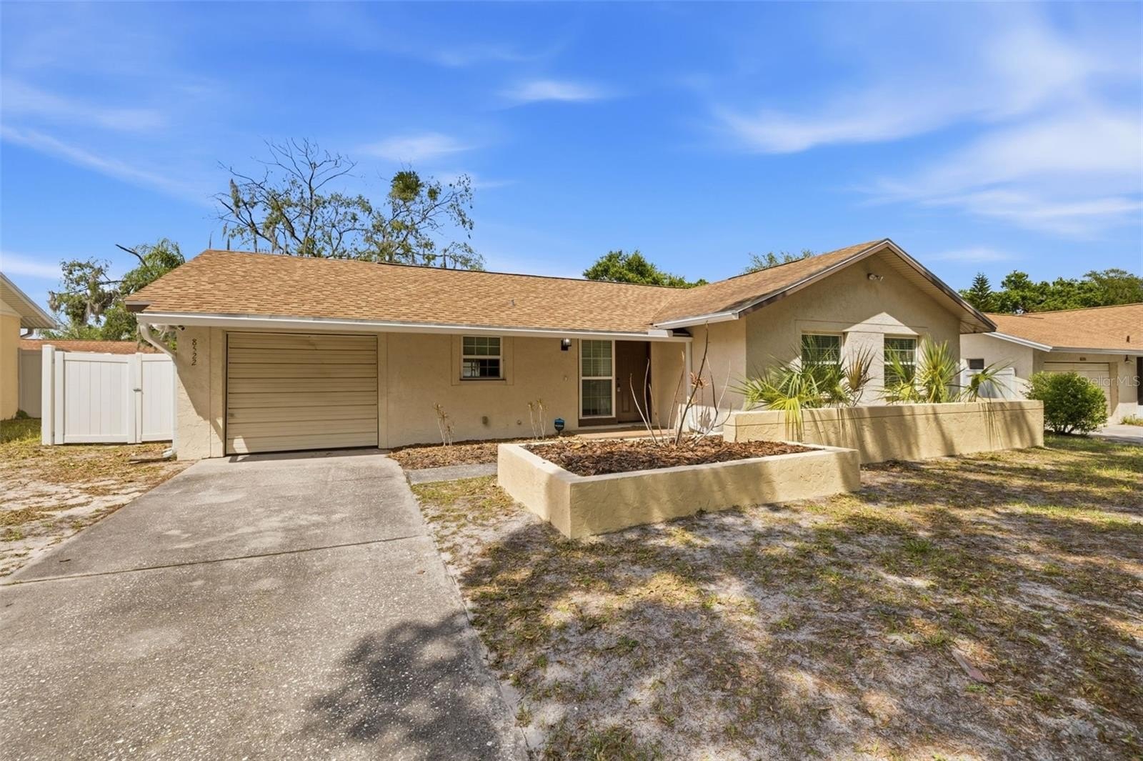 Welcome home to this beautifully updated 3-bedroom, 2-bathroom residence featuring a 1-car garage and a thoughtfully designed layout perfect for everyday living and entertaining. The heart of the home is the updated kitchen, complete with elegant quartz countertops, stainless steel appliances, and ample cabinet space. Enjoy both a dedicated dining room for gatherings and a spacious living room filled with natural light. Luxury vinyl plank flooring flows seamlessly throughout the home, offering durability and modern appeal. Step outside to a large screened-in lanai - ideal for relaxing or hosting - overlooking a fully fenced backyard with plenty of space for pets, play, or gardening. Additional features include a newer roof (2021) and AC (2017)! Located in a desirable community, residents enjoy access to fantastic amenities including a pool, tennis courts, and pickleball courts. This home combines comfort, style, and convenience - don’t miss your opportunity to make it yours! Up to $3,450 towards closing costs with our preferred lender!