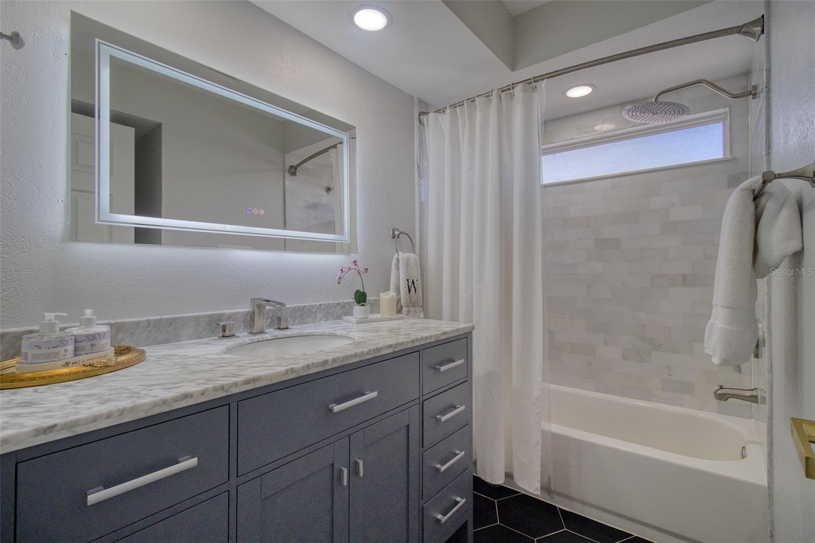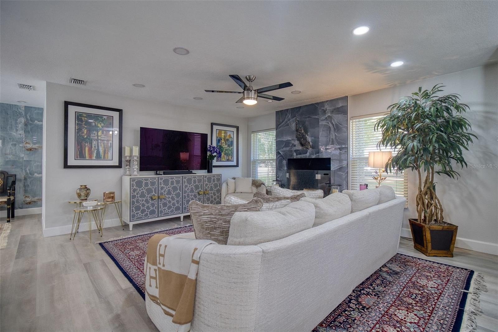 This tastefully renovated 4 bedroom, 2 bath, heated pool residence is tucked away on a cul de sac in the highly sought after Del Robles neighborhood and minutes away from the top rated St Paul's School, beaches, shops and airports. This spacious home features an open floor plan, a large living room and dining room, family room, with the kitchen being the heart of the home. The primary bedroom is split from the other 3 bedrooms for privacy. The tastefully renovated kitchen features quartz countertops with a waterfall edges, porcelain tile backsplash, soft close shaker cabinets, and hi tech new stainless steel appliances. Both bathrooms are totally renovated with high end fixtures and finishes. The 4 year old roof and newer a/c unit = lower electrical bills. The almost 1/4 acre generous sized lot is fenced for privacy with a heated pool and entertainment area creating a seamless blend of indoor/outdoor living. Feel like you are on vacation everyday, living the wonderful Florida lifestyle in this upscale home. This chic home is centrally located close to Clearwater, airports, beach, shops, restaurants, and excellent schools.