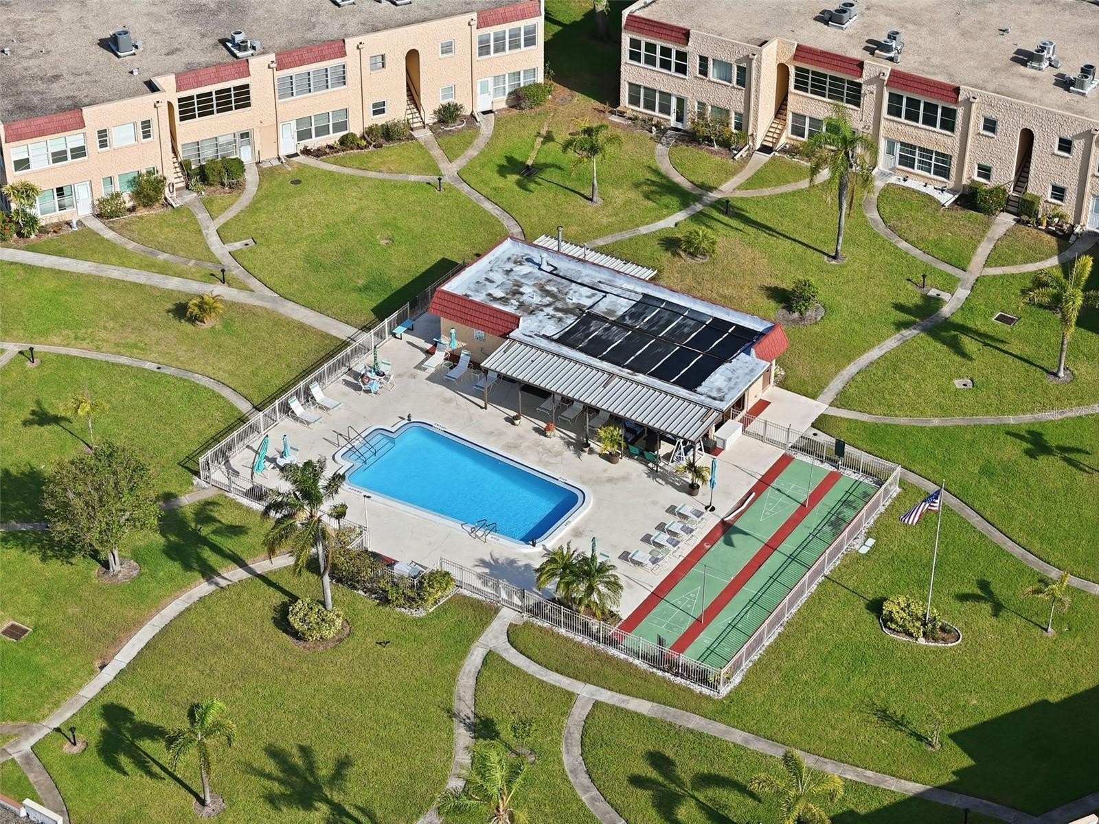 This home comes with one covered carport and an additional parking spot located just steps from your door. Community amenities enhance everyday living with a heated pool, spacious clubhouse, outdoor grill area, and shuffleboard courts.