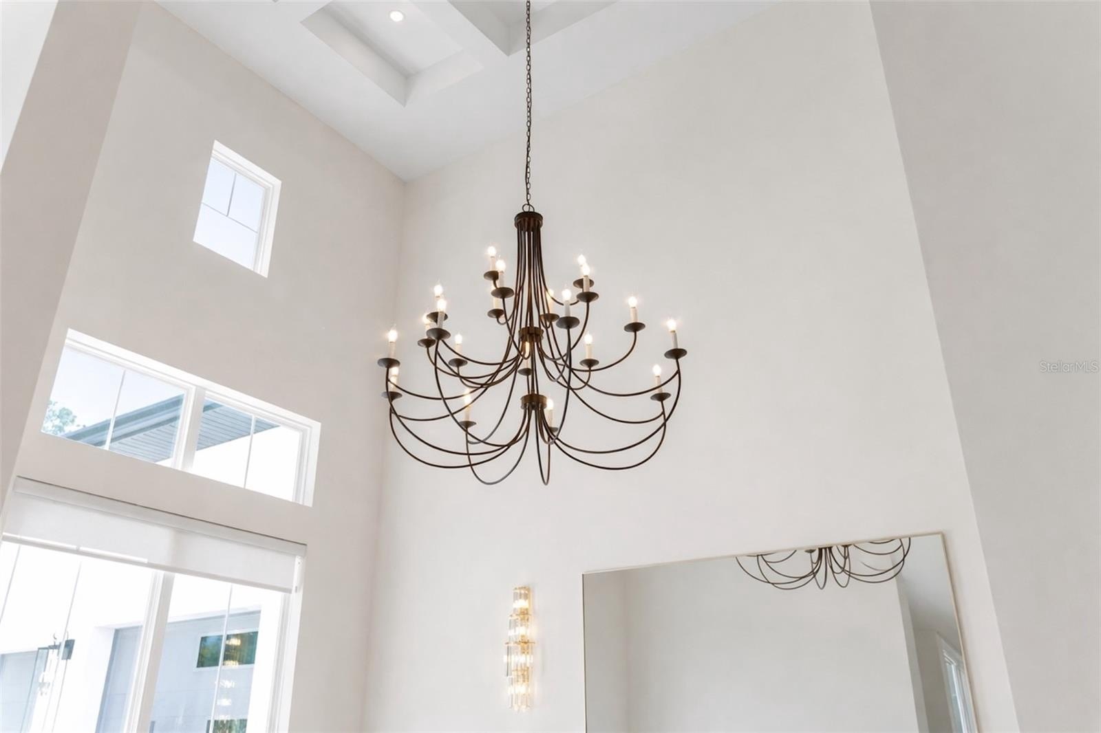 Step inside to experience impressive architectural design, highlighted by 24-foot coffered ceilings in the grand foyer and formal dining room, a vaulted ceiling reaching 14 feet in the main living area, and 12–13 foot ceilings throughout, creating a bright, open, and expansive atmosphere.