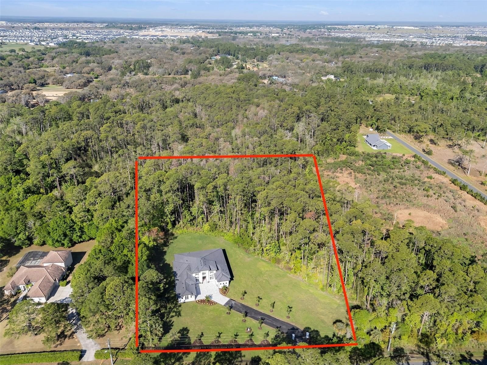 One or more photo(s) has been virtually staged. Brand-new custom-built estate offering 4,179 sq ft of living space (5,558 sq ft under roof) on 5 private acres—never lived in! Ideally located in the sought-after acreage community of Happy Trails, just minutes from Celebration, Reunion, and Walt Disney World, this exceptional property offers the perfect blend of luxury, privacy, and convenience with no HOA restrictions and ample space for horses, recreation, and enjoying your private setting.