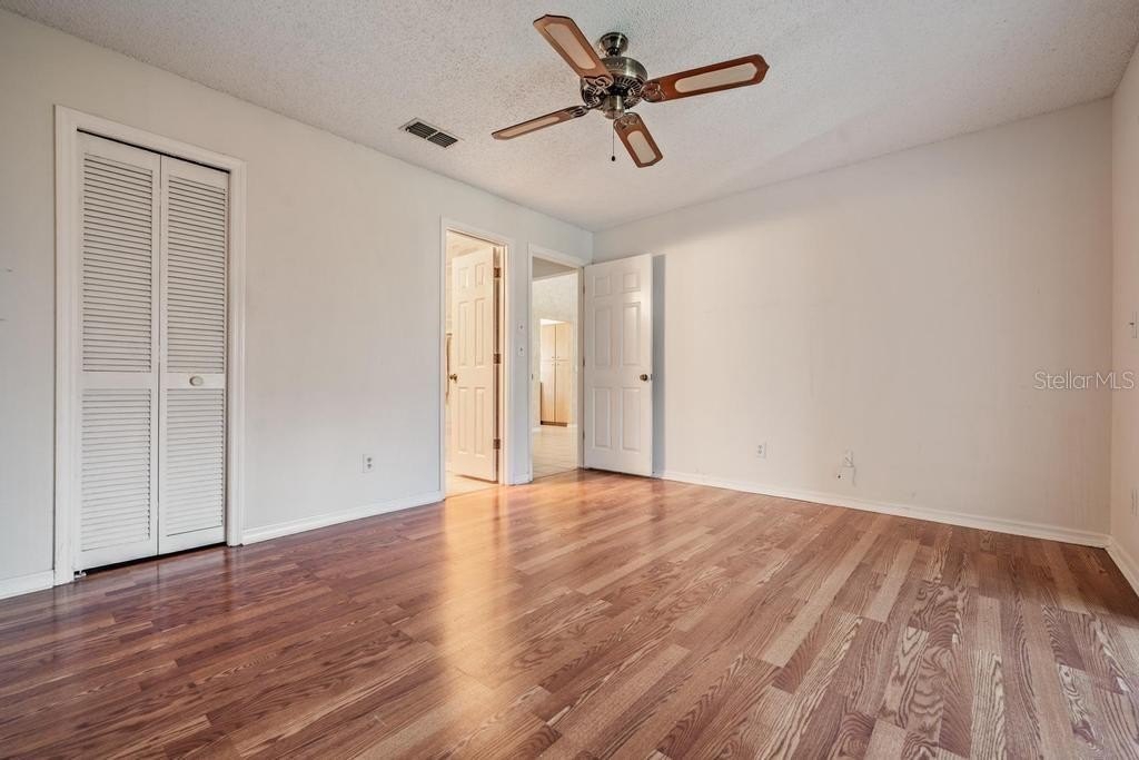 Split-bedroom floor plan provides privacy, with a spacious primary suite featuring a walk-in closet & ensuite bath with walk-in shower, while front bedroom overlooks the courtyard and is adjacent to the hall bath.