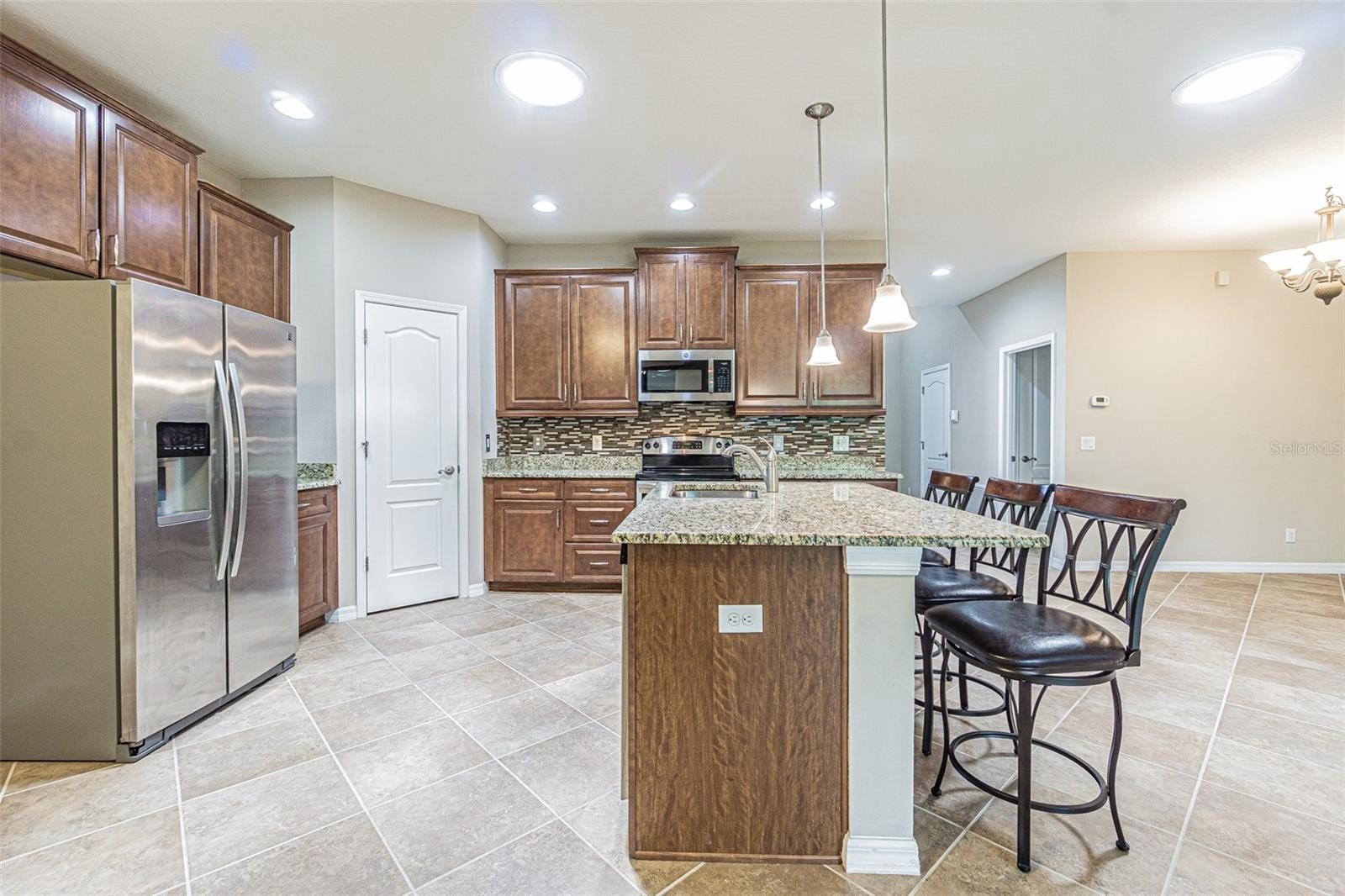 Here's a beautiful 2014 K. Hovnanian Homes, 1.707 square foot home in the highly desirable Tampa Bay Golf and Country Club community. This home features high ceilings, ceramic tile everywhere but two bedrooms which have carpet. Large kitchen with solid wood, tall cabinetry, granite, a tasteful back-splash and stainless steel appliances. This home is 100% move-in ready. The large, two car garage has a utility sink, overhead storage and an electric roll-down garage screen. The bathrooms offer high vanities with granite, modern fixtures and more. TBG&CC has two incredible golf courses, the 18-hole Championship course and a 9-hole executive course. The golf courses here are impeccable and very well-maintained. Tampa Bay Golf & Country Club is Tampa Bay's premier active 55+ community featuring two swimming pools (the large resort-style pool has fountains and is heated to a balmy 80 degrees). Pickleball, tennis, cards, bocce, shuffleboard, cornhole, and more activities than anyone could possibly do! Our new activities center has a HUGE fitness center with state-of-the-art fitness equipment, a beautiful billiards room, and an amazing card room. TBG&CC has no CDD and very affordable HOA charges, which include Cable/Internet/DVR and Mini Box. The Tampa Bay Golf & Country Club is Tampa Bay's most desirable 55+ Active community. All room sizes are approximate and should be confirmed by buyer(s).
