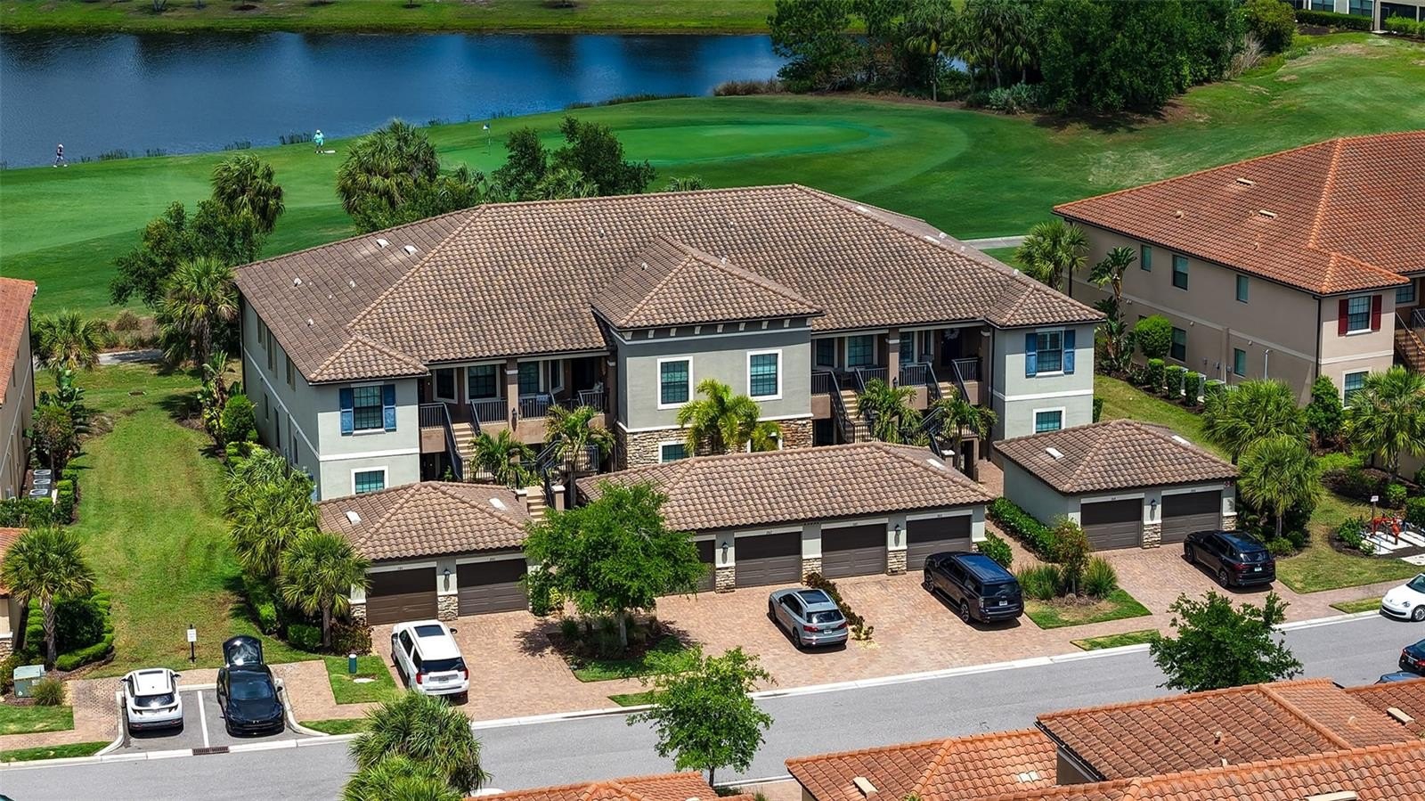 An excellent investment opportunity with a lease already in place, this garden condominium in Esplanade Golf & Country Club offers immediate income in a highly desirable Lakewood Ranch community. This Caserta VII floor plan features two bedrooms, two baths, and a versatile den or flex space, designed with an open-concept layout that appeals to today’s renters and future owners alike. The foyer leads into a spacious dining area and great room, where sliding glass doors open to a covered, screened lanai overlooking tranquil lake and golf course views. The kitchen is thoughtfully appointed with 42-inch cabinetry, granite countertops, and an oversized island that flows seamlessly into the main living areas. The primary suite includes dual vanities, a large walk-in shower, a private water closet, and two generous walk-in closets. A private hallway leads to the guest bedroom and bath, offering comfort and separation for visitors. The residence also includes a one-car detached garage. While this unit does not include a golf membership, residents still enjoy access to Esplanade’s exceptional resort-style amenities set across approximately 600 acres of scenic lakes, preserves, and natural beauty. Amenities include resort-style pools, a resistance pool, fitness centers, sports courts, dining venues, and a full social calendar, all easily accessible by golf cart—delivering the vibrant lifestyle that makes this community so sought after. Lakewood Ranch is the number one best-selling, multigenerational community in the country and located near world-class shopping, dining, entertainment and is minutes to I-75, beaches, great schools and medical facilities.