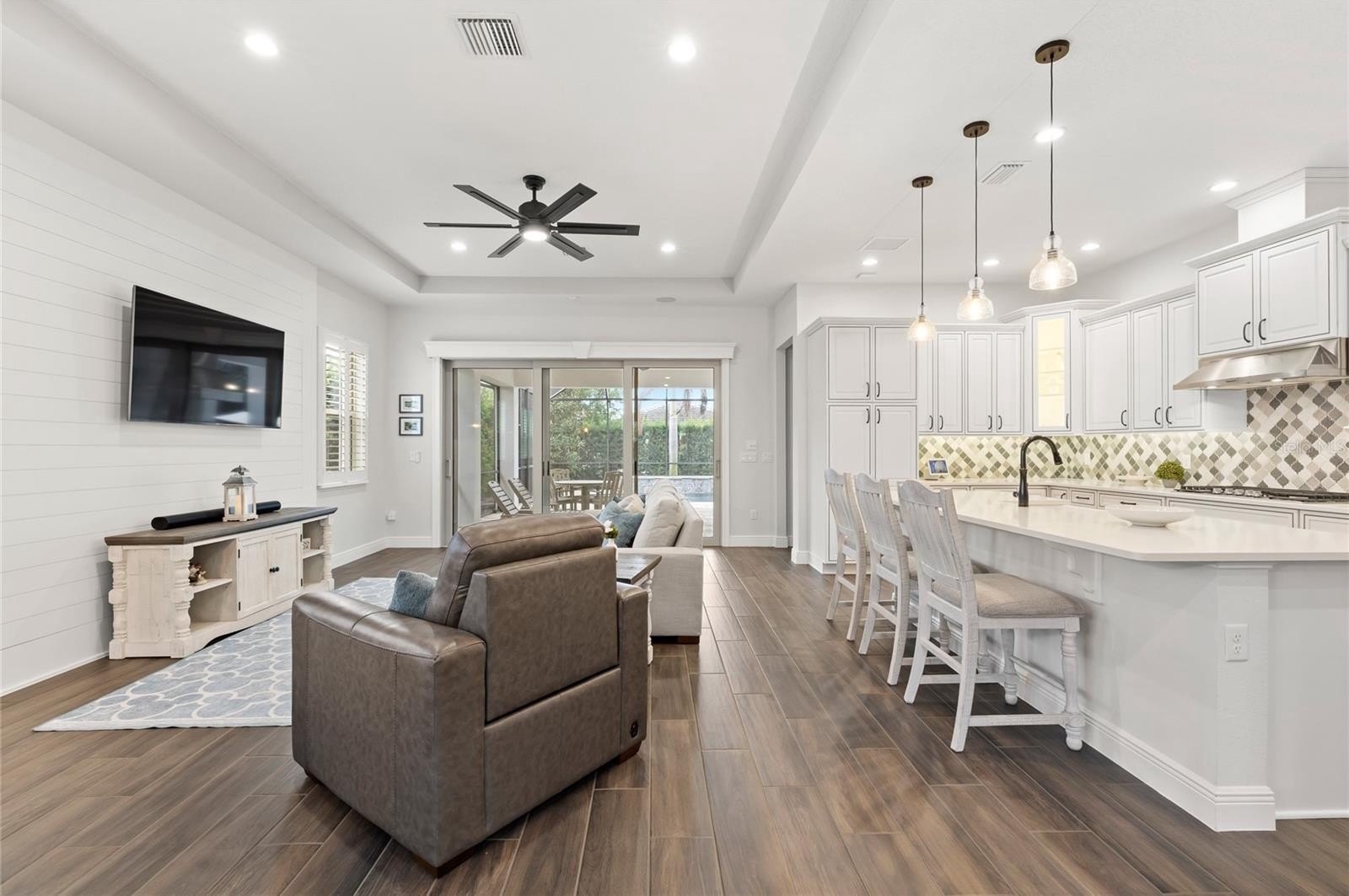 The kitchen sits right at the heart of the home with upgraded cabinetry, premium appliances, and a large island that makes cooking, gathering, and entertaining feel effortless. It opens directly to the living room and backyard, so everything stays connected.