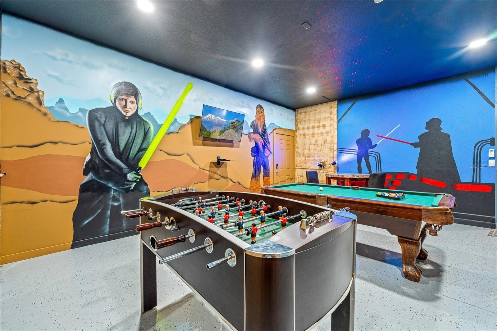 TURNKEY VACATION HOME! Located in the attractive Champions Gate Resort and Golf Community, this gorgeous 3900 square foot, 8-bedroom, 5-bathroom house is beautifully decorated and furnished throughout. With a large open floor plan where the kitchen flows into the spacious living-room and dining room, you can entertain all your family and friends. Unlike the majority of the homes in Champions Gate this home has NO REAR NEIGHBORS as well as a PIE SHAPED LOT which is perfect for privacy! The pool also backs up to the SOUTH WEST which allows for NIGHTLY “COTTON CANDY” SUNSETS as well as sun exposure over the pool area into the late afternoon! This helps tremendously from a rental standpoint as it makes for an excellent pool photo and is the perfect way to wrap up long family days at the parks and watch the sun disappear before dinner! This home has something for everyone including multiple themed bedrooms such as HARRY POTTER, STAR WARS GARAGE GAME ROOM, THEATER ROOM, & OF COURSE MICKEY! All professionally decorated to enhance the experience of a true Florida vacation as well as help boost your rental income! The garage game room also has an AC UNIT which allows it to be used even during the hotter months of the year. The current owners have replaced all carpet with luxury vinyl plank flooring! Take advantage of one of the best features of the community and spend the day at the Oasis Club House which includes a kid’s pool, splash pad, family pool, lazy river with a water slide, private cabanas, tiki bar, fitness center, arcade, theatre, restaurant, and bar. Located centrally within all the vacationers “go to” spots so you will always have something fun to do. Champions Gate also has two of the best public golf courses in the area (National & International) right around the corner as well as Champions Gate Country Club within the resort! Included in your HOA is a 24-hour guarded gate, cable, internet, clubhouse, all exterior landscaping, tennis courts, and volleyball courts! Schedule your showing today and start making family memories that will last a lifetime!