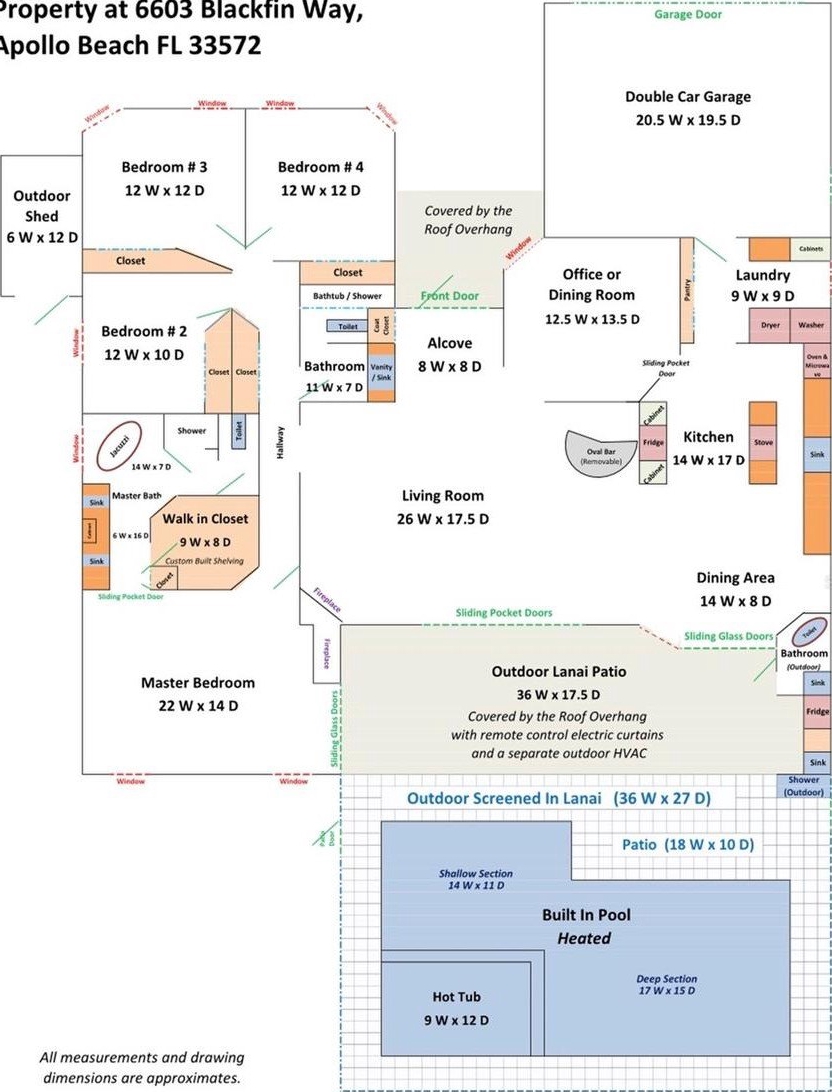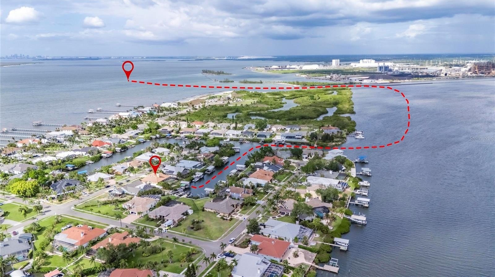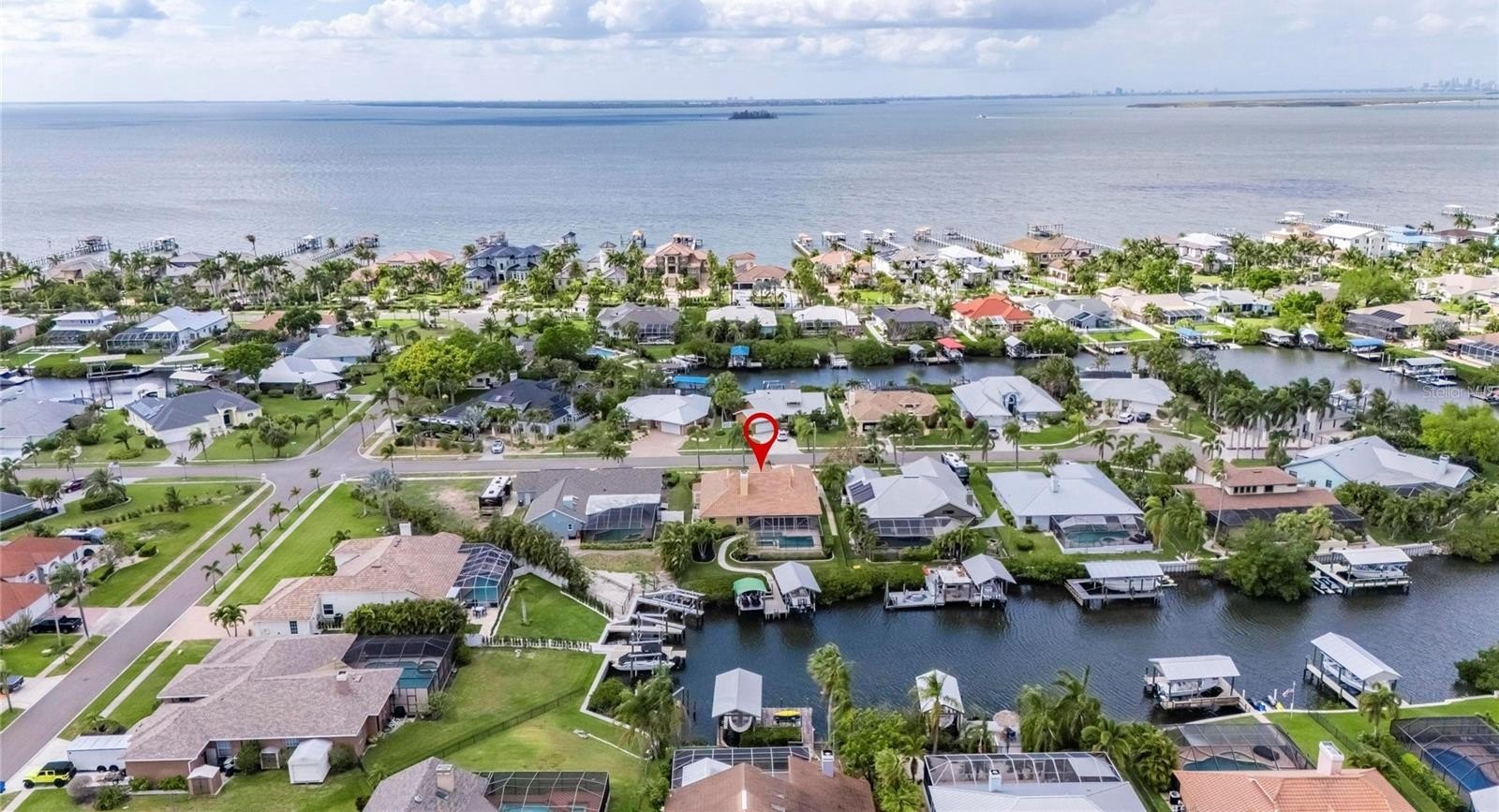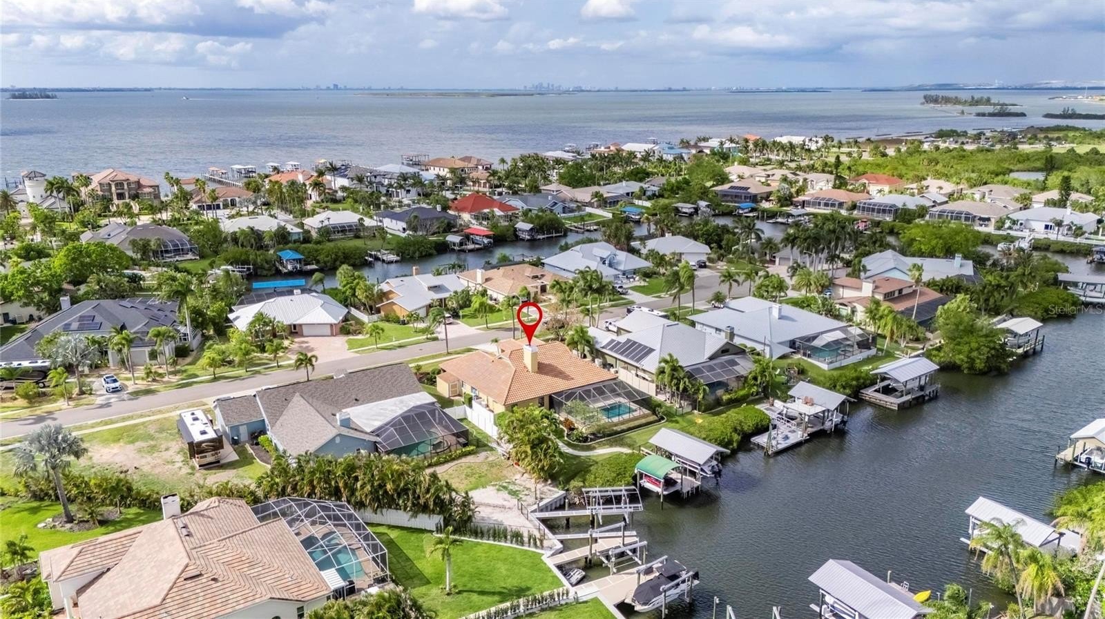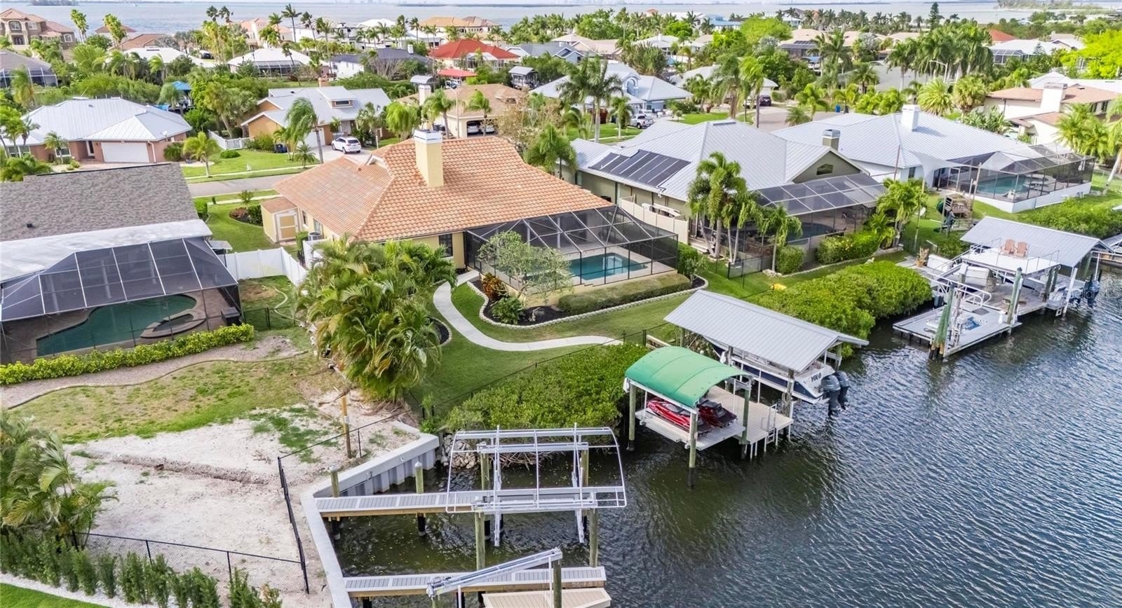 BOATER’S/ENTERTAINER’S DELIGHT! Enjoy all that Florida has to offer in your private sanctuary in the desirable Cobia Cay section of Apollo Beach with NO HOA, NO CDD. This METICULOUSLY MAINTAINED home ON A CANAL offers QUICK ACCESS TO TAMPA BAY from your own private dock, with TWO COVERED BOAT LIFTS (10,000 lb and 8,000 lb), providing the ability to entertain inside and out all year. Designed for those who love to host, the home’s layout flows effortlessly from the grand living spaces to a MASSIVE 36’ x 17’ SCREENED OUTDOOR LANAI PATIO (with removable child/pet fence). This "all-seasons" space is a TRUE EXTENSION of the home, featuring remote-controlled electric curtains for privacy and shade, a dedicated outdoor HVAC system for year-round comfort and AN OUTDOOR BATHROOM —perfect for poolside gatherings in your HEATED SALT WATER POOL AND HOT TUB. Enjoy peace of mind knowing that this property DID NOT flood and sustained NO damage during recent hurricanes. Inside you’ll find 4 OVERSIZED BEDROOMS, including a massive master suite with a GAS FIREPLACE, a SPA LIKE BATH and A CUSTOM BUILT WALK-IN CLOSET. A spacious kitchen opens directly into the heart of the home featuring CATHEDRAL CEILING AND A GAS FIREPLACE, as well as a LARGE BONUS ROOM (office/dining area) offers versatility for modern living.
