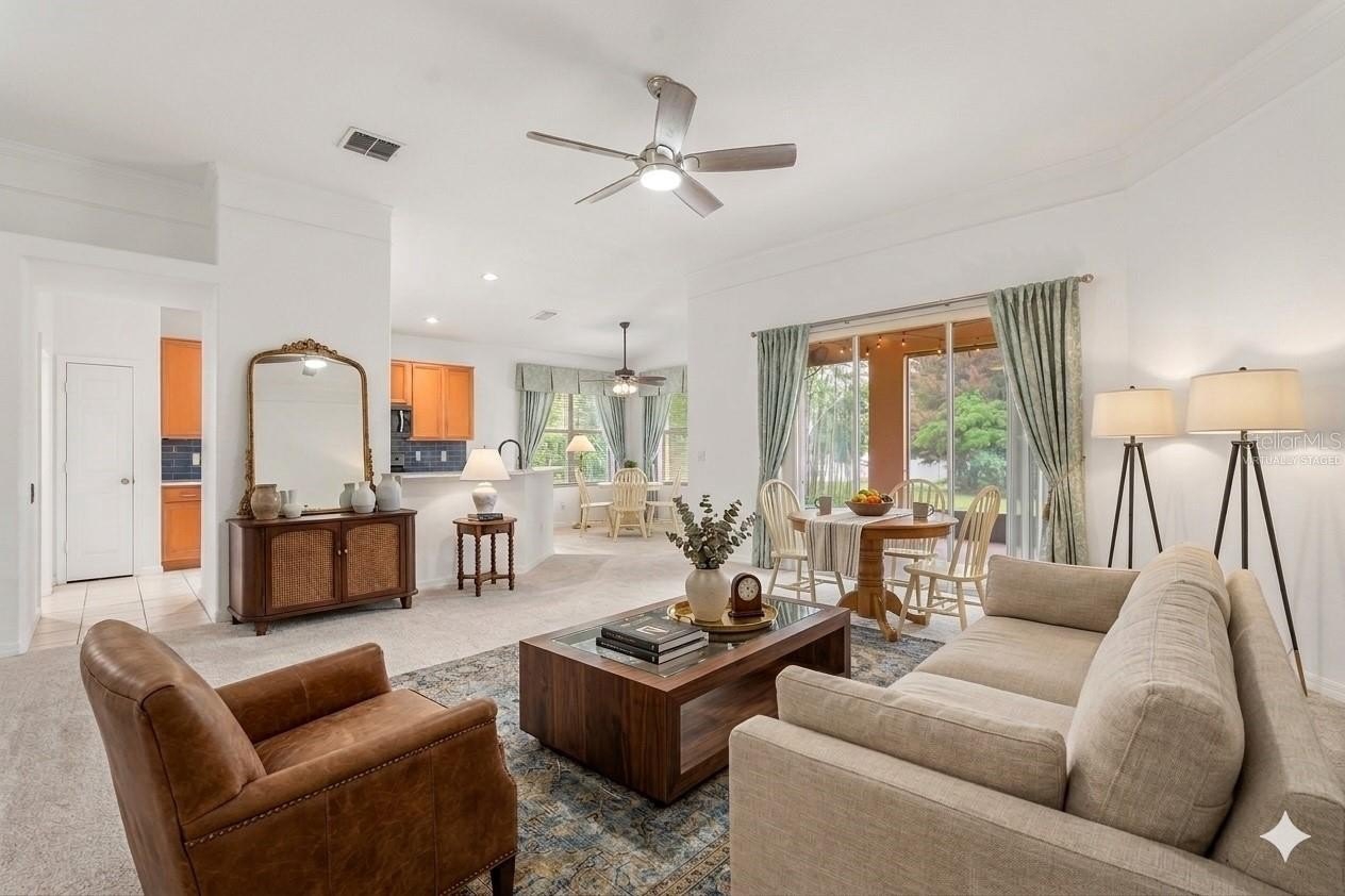 Tucked away on a quiet cul-de-sac, this freshly painted 3-bedroom, 2-bath home offers 2,077 sq. ft. of move-in ready living space. The open-concept great room features retractable sliding glass doors that lead to a 350 sq. ft. covered and enclosed outdoor retreat, creating the perfect space for relaxing or entertaining.