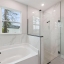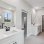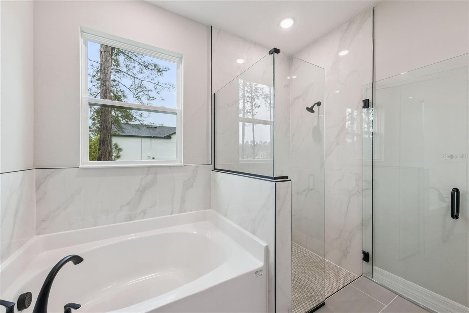 The open-concept layout provides a well-appointed kitchen and living area ideal for both everyday living and entertaining. A dedicated laundry room with sink and vanity adds convenience. The primary suite offers a spa-like retreat with dual vanities, a large walk-in closet, glass-enclosed walk-in shower, separate soaking tub, and private water closet.