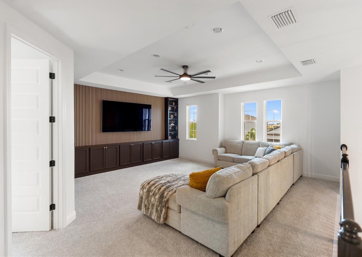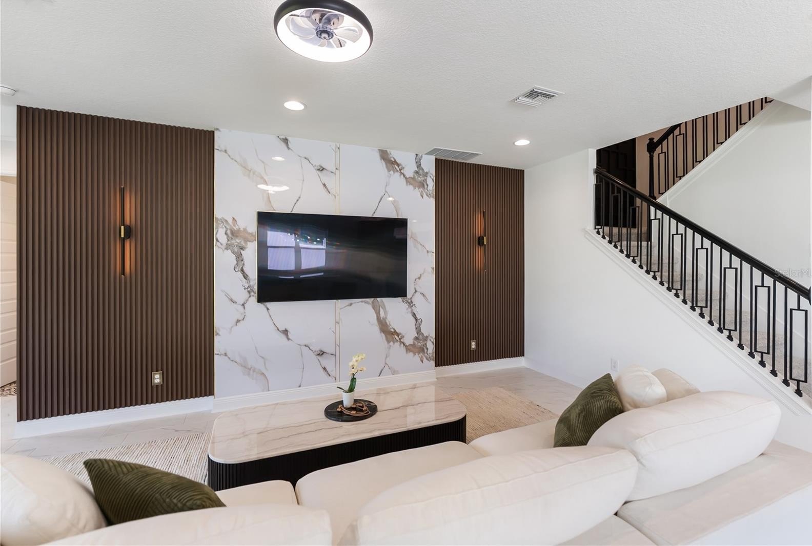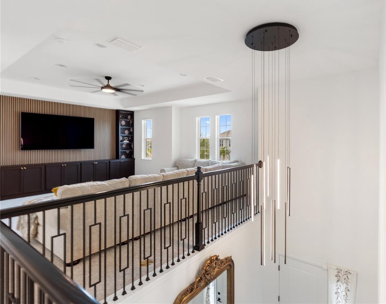 Welcome to a beautifully designed home in Sweetwater at Lakewood Ranch, where modern style meets everyday comfort in one of the area’s most sought-after communities. This 5 bedroom, 5 bathroom home offers a clean, elevated feel with thoughtful upgrades and a layout that just makes sense. From the moment you walk in, you’re greeted by soaring ceilings, natural light, and an open, airy feel, with a statement entry featuring custom lighting that flows seamlessly into the main living spaces. The kitchen is beautifully designed and opens directly to the living and dining areas, making it perfect for entertaining or everyday living, with custom touches throughout including accent walls, upgraded lighting, and high-end finishes that truly set this home apart. A rare custom upgrade, this home features a primary suite on the first floor, something not offered in other floor plans, complete with dual vanities, a spacious walk-in closet, and a full bath, creating the perfect private retreat. Upstairs, a spacious loft provides the perfect second living area, media room, or game space, complete with a custom built-in feature wall that adds both style and functionality. The primary suite is bright and spacious, featuring a tray ceiling, oversized fan, and plenty of room to unwind, while the bathrooms throughout the home offer clean, modern finishes including quartz countertops, upgraded cabinetry, and glass-enclosed showers. For added peace of mind, the home is equipped with hurricane shutters and all windows are hurricane-impact rated. Every space in this home feels intentional while still being highly functional for daily living. Located in Sweetwater at Lakewood Ranch, residents enjoy resort-style amenities including a clubhouse, fitness center, resort-style pool, playground, and scenic walking trails, all just minutes from Waterside Place, Main Street, dining, shopping, golf, and a short drive to Siesta Key and the area’s beautiful beaches. This is the kind of home that feels just as good in person as it looks in photos.