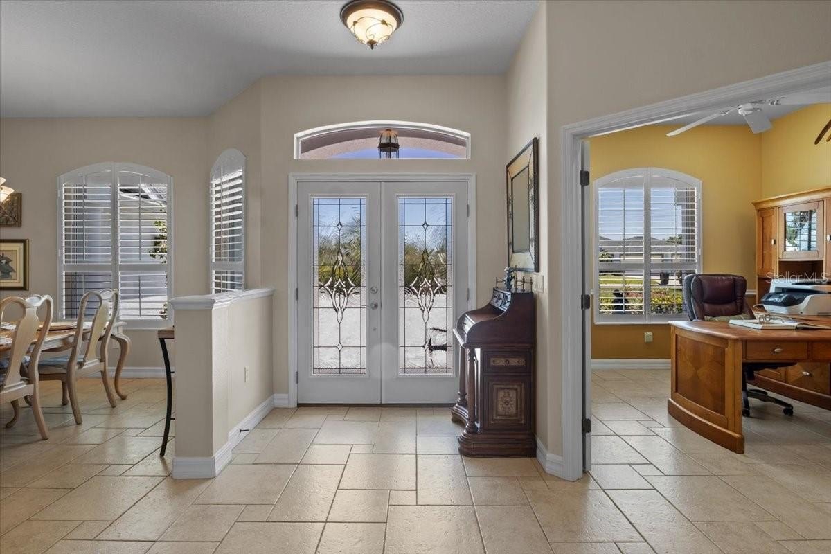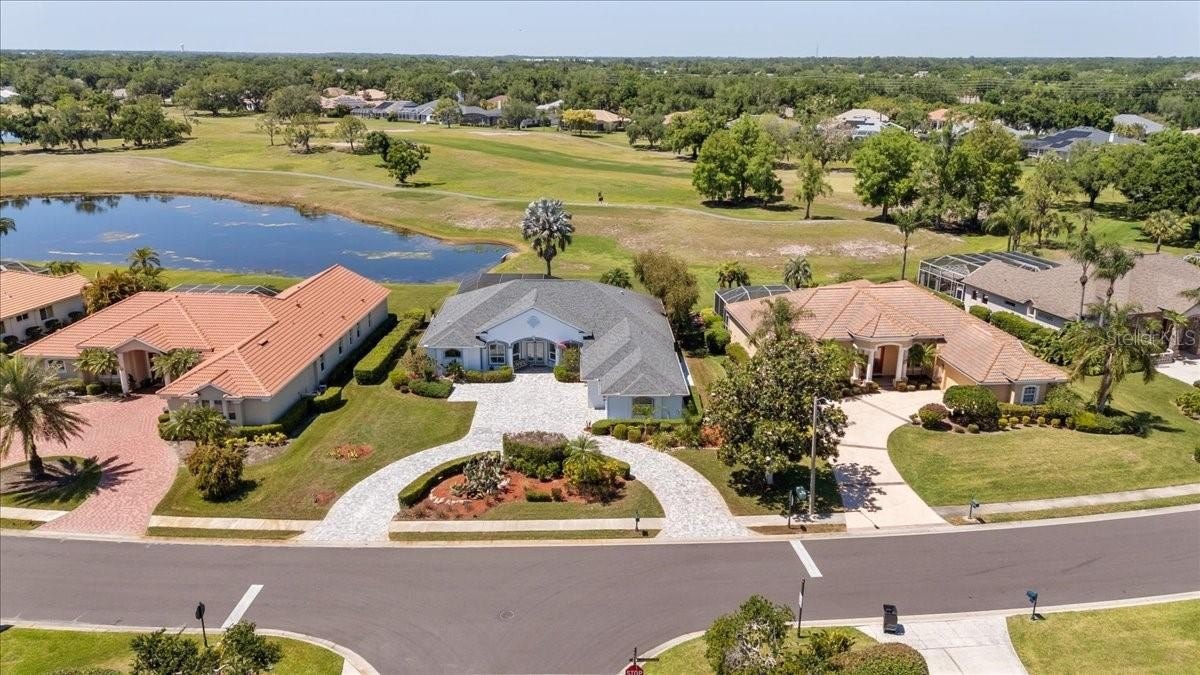 Why wait for a new build when you can have so much in a home that sits in a premier, established golf course community with a larger lot (on golf course and pond) and features numerous upgrades? Move-in ready and shows like a model! TWO PRIMARY SUITES , NEW ROOF (2018), NEW IMPACT WINDOWS (2018), NEW FRONT DOORS (2025), NEW PAVER DRIVEWAY (2024), NEW MULTISTAGE 18 SEER HEAT PUMP (2021) AND A TRANSFERRABLE WARRANTY FROM HOME TECH paid through 12/26. As you enter the front door, you will be drawn to the EXPANSIVE LAKE AND GOLF COURSE VIEW that is maximized throughout the home. The lanai is large and features a newly sealed TRAVERTINE deck, a sparkling pool with new pop-ups (2025) and adorned with gleaming 7’ dual dolphin fountains! The cage was recently rescreened with No-See-Um 20/20 screen (2025) for your outdoor comfort. Three banks of sliders spill out onto the lanai with two pocketing all the way back to bring the outside in. The open plan blends function and livability with consistent ceramic floors throughout that accent the already spacious interior. The kitchen features gleaming new (2023) quartzite countertops, new backsplash, composite sink, faucet and rich cabinetry. The left side of the house contains the spacious owner’s suite with a large sitting area, walk-in closets, an ensuite bath with private toilet room, opposing vanities, Roman shower and a soaking tub. The right side of the house features two additional generous bedrooms, both with large closets and a bath in the hallway. One of the bedrooms (left in hallway) offers an additional sitting area (6x9 1/2) with sliders leading to lanai and a full bath with access to the lanai and pool - the perfect area for visitig company or full-time in-laws. Other features and upgrades include new sprinkler system (2026) with 2-yr warranty, interior freshly painted (2024), a 2 1/2 CAR SIDE LOAD GARAGE offering plenty of space for cars, golf cart or storage), whole-house vacuum and tons of storage. RW is an established community with winding, tree-lined streets with tall oaks and mature landscaping. Walkers, bikers and neighbors walking their dogs set the scene for an active and social community. The golf course and country club have recently been purchased by The Walden Group and will be professionally managed by Pinnacle Golf Properties. It is expected that they will be making a significant investiment in the facilities making it the a premier destination! The Club offers pickle ball, pool, fitness center, tennis and many social activities. Boat and RV storage in community. For the nature lovers, there are hiking trails and abundant wildlife. CLUB MEMBERSHIP IS OPTIONAL. There is a COMMUNITY BOAT RAMP that is open to the entire community and provides direct access to the Manatee River. River Wilderness is PERFECTLY LOCATED! Strategically positioned between St. Pete and Sarasota, access to 2 airports (45 min.) several hospitals is available to the north and south. The newly constructed Ft Hammer Park located on the beautiful Manatee River is just minutes south of the front gate and features a boat ramp, fishing pier plus picnic pavilion. The new Fort Hammer Bridge also provides a convenient back route into Lakewood Ranch and Sarasota where fine dining and shopping are within easy reach. No pickup trucks in driveway overnight in RW. Buyer to verify sf. POOL HEATER AND INTERCOM DO NOT FUNCTION AND WILL NOT BE REPLACED/REPAIRED.