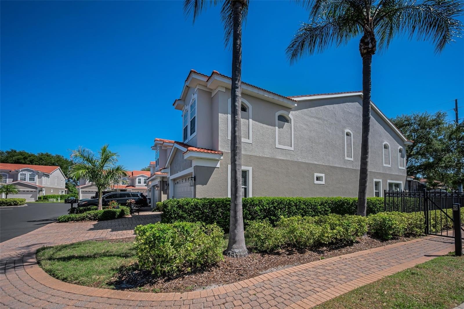 NOT EVERY UNIT IN THE VILLAS OF SAN MARINO LIVES THE SAME. At 2,538 square feet, this end unit is the community’s largest floor plan, offering a noticeably more open feel with the light and breathing room that come with an end-of-row position and no neighboring building on one side. The main living area is anchored by hardwood floors and filled with natural light from east and south exposures. The kitchen features granite countertops, stainless appliances, a cooking island, and a closet pantry. Fresh interior paint has been applied throughout the entire first floor, the high-volume stairwell, and the upstairs hallway. An open wood staircase leads to the second level, where the upper hallway features an open railing rather than the common closed drywall. Hardwood continues through the stairs and upper hall, while bedrooms are finished with newer LVP flooring. The primary bedroom is notably large, providing enough space for a private reading nook, a home office, or a dedicated workout area. It includes a private balcony with space for seating. While located along Alt 19, the interior is quiet. This is one of the original units built with a concrete block demising wall through to the second floor - a rare construction detail not found in later builds that provides exceptional sound separation. POSITIONING WITHIN the community is a distinct advantage here. As an end unit facing a wider street, the home avoids the "boxed-in" feel found in typical sections, with a front entry that doesn't look directly into a neighbor's door. The outdoor space features a spacious screened, tiled rear patio - a finished upgrade over the standard concrete - positioned to enjoy morning sun and comfortable afternoon shade. Residents enjoy a heated pool, and the Pinellas Trail sits just outside the gates, with walkable favorites like Thirsty Marlin and The Salty Lime nearby. The association is financially sound with strong reserves and proactive planning. The monthly fee covers exterior maintenance, roof, landscaping, cable, internet, and trash - with exterior painting completed in 2023. Located in Flood Zone X500 (no flooding history) and zoned for Palm Harbor University High, Palm Harbor Middle, and Ozona Elementary. This is a refreshed, substantial end-unit townhome in Villas of San Marino at Palm Harbor with a layout widely considered the best in the community, exceptional sound separation, and a feel that is hard to duplicate.