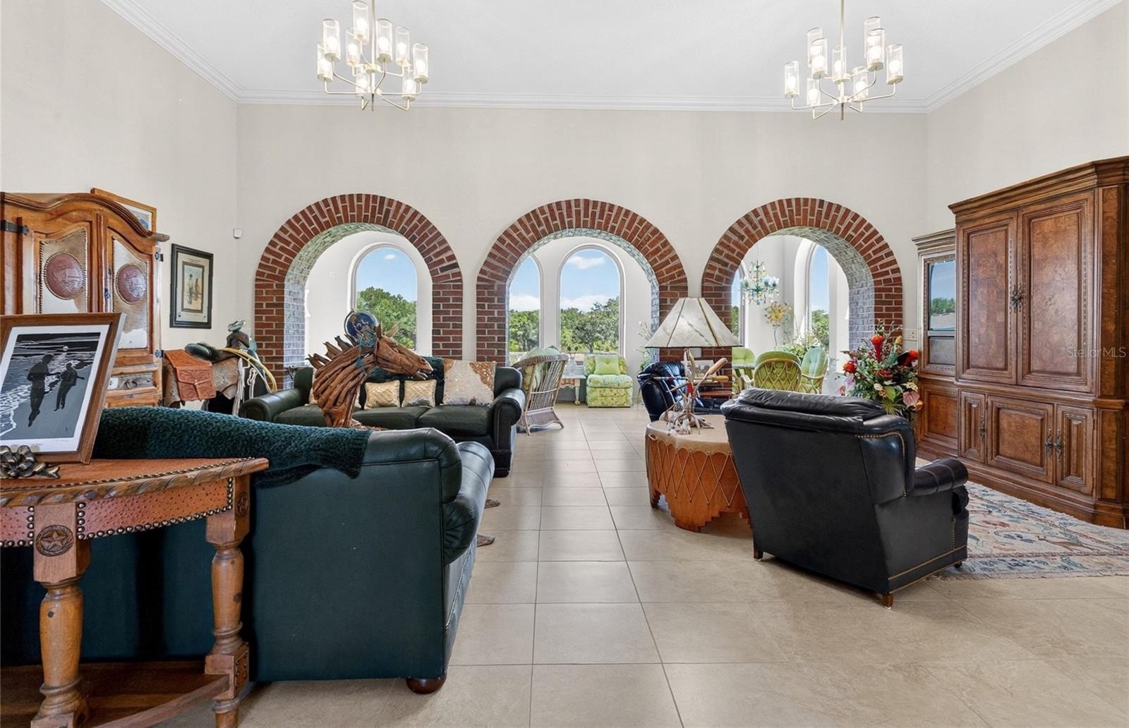 Featuring 3 bedrooms, 2.5 bathrooms, and a spacious Florida room with panoramic pond and conservation views, this home is designed for both everyday comfort and effortless entertaining. Natural light fills the interior, highlighted by soaring ceilings, crown molding, custom fixtures, and a seamless blend of porcelain tile and wood flooring throughout.