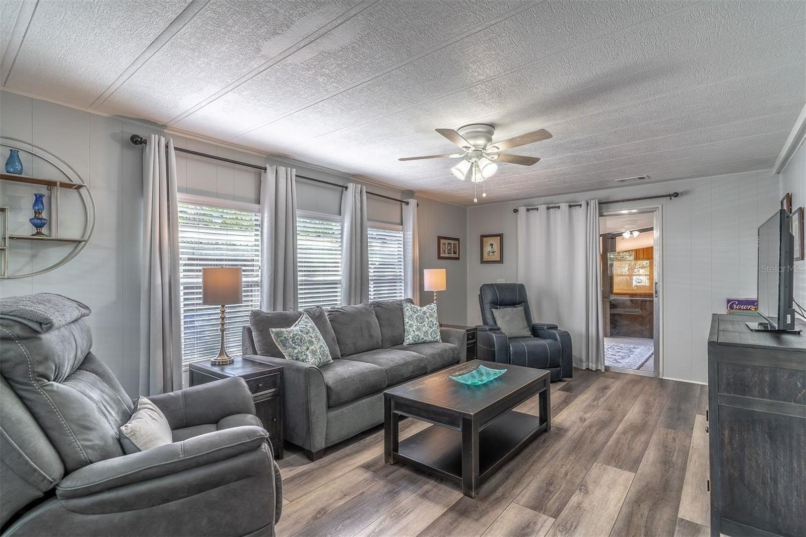 This is more than just a home, it’s a lifestyle. Don’t miss your opportunity to enjoy easy living in one of Lake Mary’s most desirable 55+ communities – The Forest! Welcome to this beautifully maintained and exceptionally spacious home offering almost 1,500 square feet of comfortable living space in a thoughtfully designed two-bedroom, two-bath layout. From the moment you arrive, you’ll appreciate the wide driveway with covered parking that easily accommodates both your vehicle and golf cart side-by-side, along with a screened patio area on the carport—perfect for relaxing outdoors. The home also features a generous storage room with washer and dryer and a fully fenced yard; all set on a wide lot with attractive landscaping. Step inside and you’re immediately greeted by an open and airy floor plan filled with natural light. The kitchen is truly the heart of the home, featuring a large pantry, abundant cabinet and counter space, and newer stainless-steel appliances—ideal for both everyday living and entertaining. Just off the kitchen is a spacious dining area highlighted by an oversized built-in cabinet offering even more storage and serving space. The living room is bright and inviting, enhanced by a beautiful bay window that fills the space with light. Newer vinyl plank flooring runs throughout all the main living areas, adding a modern touch while being both durable and easy to maintain. You’ll find an expansive Florida room currently used as a cozy TV retreat, creating the perfect spot to unwind. Off the Florida room and guest bedroom is a large bonus room that is heated and cooled and offers flexible space that can be used as a craft room, workshop or great man-cave. Currently there is a hot tub located in this space but owner has never used the hot tub. From the bonus room you can enter the backyard from the new deck with Trex decking make this weatherproof and low maintenance. Outdoor living is just as impressive, with a large, screened patio offering endless potential for relaxation or entertainment. Inside, both bedrooms are generously sized and include walk-in closets, with the primary suite offering a spacious layout, abundant natural light, and an updated bath complete with a step-in glass-enclosed shower and large vanity. This home is truly move-in ready, with a roof that is only six years old and a level of cleanliness and care that is immediately noticeable throughout. With its open layout, abundant storage, and bright, updated feel, this property is a rare find that combines comfort, functionality, and style. This is a highly sought-after 55+ community in the heart of Lake Mary, you’ll enjoy an unbeatable location just minutes to I-4, shopping, dining, and new medical facilities. This gated, golf-cart-friendly community is known for its welcoming atmosphere and vibrant lifestyle, making it easy to get involved and build lasting friendships. Residents enjoy an incredible array of amenities including two resort-style pools, a hot tub, saunas, shuffleboard courts, tennis and pickleball courts, a billiard room, card room, library, craft room, and resident laundry facilities. The beautiful clubhouse serves as the social hub of the community, offering a full calendar of activities, events, and gatherings year-round. The monthly HOA fee includes cable TV, Internet and Trash Pickup. Don’t wait to schedule a showing – this will sell quickly!!!!