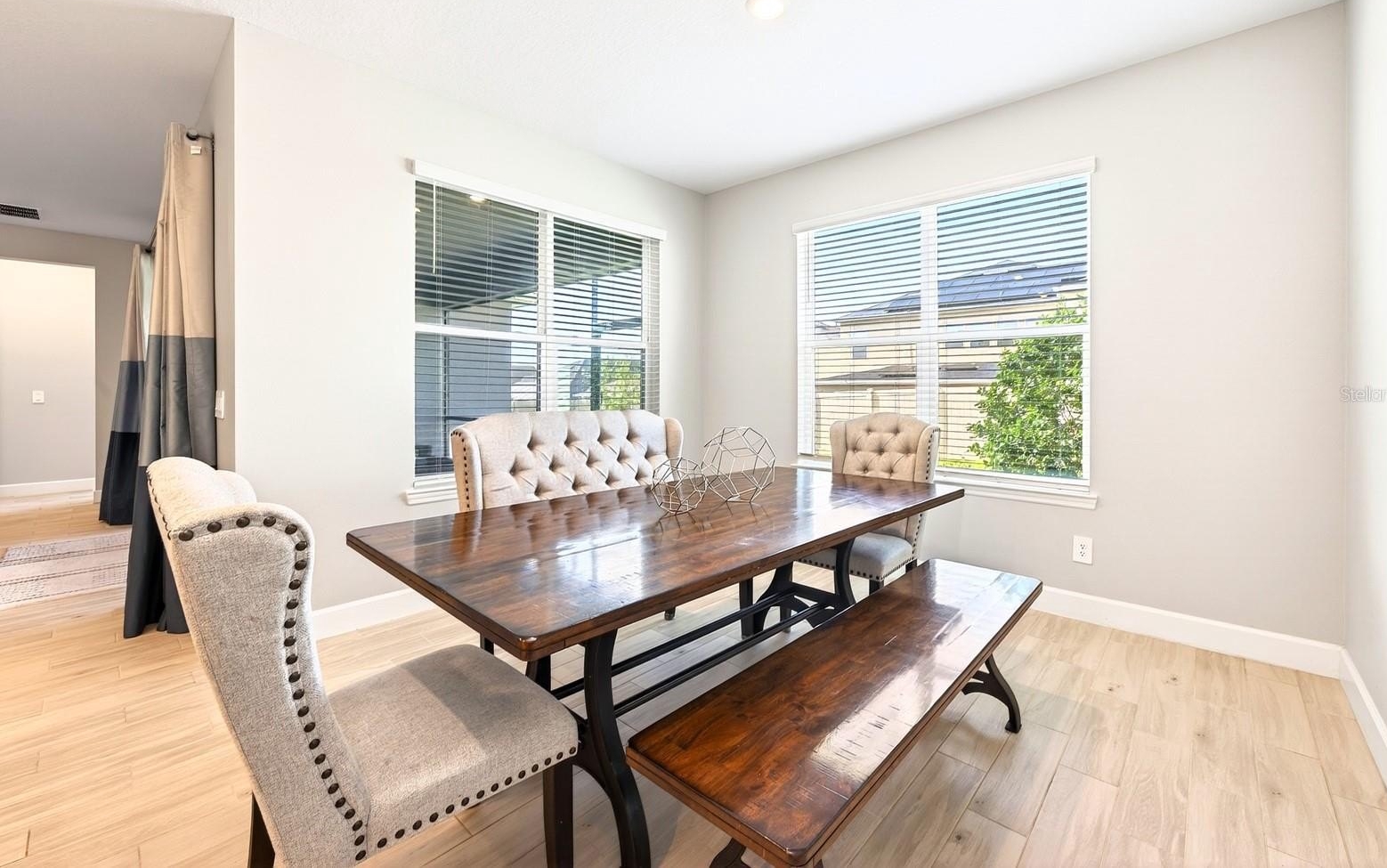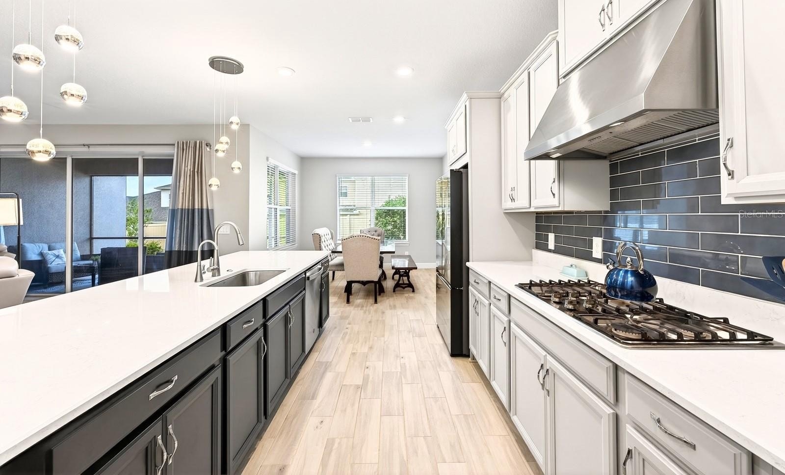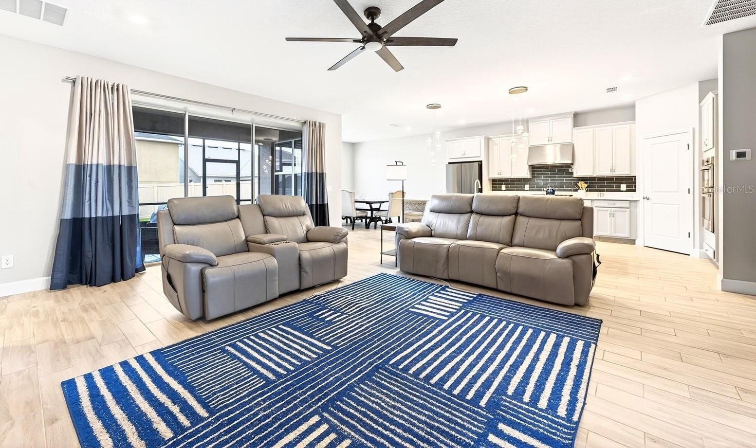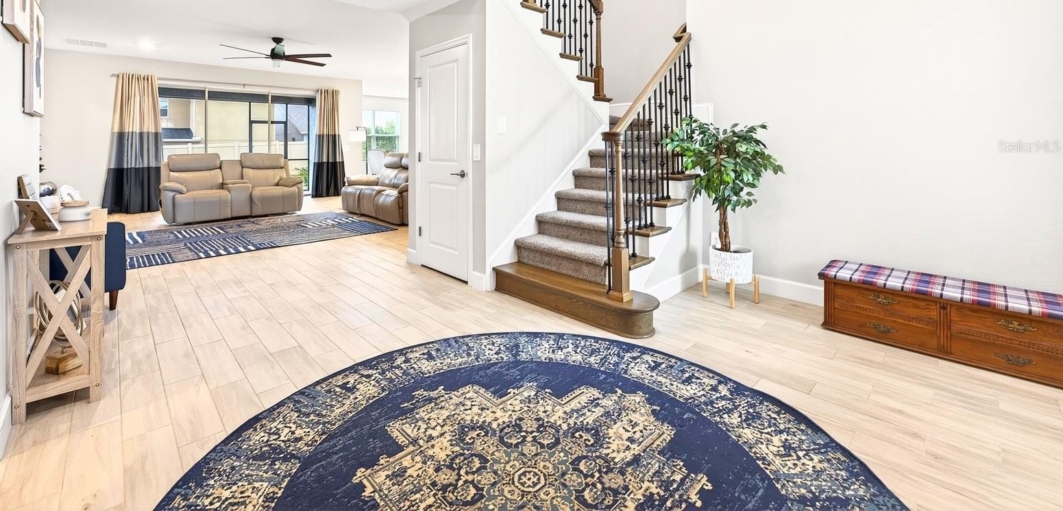 Welcome to this IMMACULATELY MAINTAINED 5-bedroom, 4.5-bath residence in the GATED LAKESIDE COMMUNITY of Apopka, where modern elegance meets everyday comfort across over 3,400 SQUARE FEET of thoughtfully designed living space. Built in 2022, this home still FEELS LIKE NEW and is truly MOVE-IN READY, with refreshed landscaping, a courtyard-style THREE-CAR GARAGE, and a charming front porch creating standout CURB APPEAL. Step inside to SOARING CEILINGS and a grand foyer, where your eye is immediately drawn to the elegant staircase and the open, airy layout beyond. WOOD-LOOK TILE FLOORING throughout the main living areas adds both style and durability, while the OPEN-CONCEPT DESIGN seamlessly connects the Living Room, Dining area, and Kitchen—perfect for both everyday living and entertaining. The Living Room is both stylish and inviting, complete with a modern ceiling fan, CUSTOM DRAPERY, and expansive THREE-PANEL POCKET SLIDING DOORS that open wide to blend indoor and outdoor living.The Kitchen is a TRUE SHOWPIECE, designed to impress with 42” cabinetry, sleek backsplash, BUILT-IN OVENS, stainless steel appliances, a generous breakfast bar, and an oversized pantry. The SUNNY DINING AREA is framed by windows, creating a warm and welcoming space for everything from casual mornings to elegant dinners. The main-floor Primary Suite is a PRIVATE RETREAT, offering serene backyard views and a SPA-INSPIRED en suite bath featuring dual vanities with a dedicated makeup area, a STYLISH GARDEN TUB, and an EXPANSIVE STEP-IN SHOWER with rainfall feature and dual bench seating. A secondary bedroom with its own EN SUITE on the first floor provides ideal accommodations for guests or multigenerational living. A HALF BATH and LAUNDRY ROOM complete the main level. Upstairs, a SPACIOUS BONUS ROOM provides flexible living space, perfect for a media room, playroom, or additional lounge area. Three additional generously sized bedrooms—ALL WITH WALK-IN CLOSETS—offer plenty of room for family or guests, including one with its own EN SUITE BATH, while the remaining two share a FOURTH FULL BATH. Step outside to enjoy the SCREENED REAR PATIO, where you can unwind while having your morning coffee or taking in the evening gentle breeze. The SPACIOUS BACKYARD is fully enclosed with VINYL FENCING, offering privacy and the perfect setting for outdoor gatherings, play, or relaxation. A SECURITY SYSTEM adds an extra layer of comfort and peace of mind. Residents of Lakeside enjoy RESORT-STYLE AMENITIES, including a sparkling community pool, playground, and lake dock, all within a welcoming neighborhood known for its friendly atmosphere and TOP-RATED SCHOOLS. Ideally located, you're not far from the natural beauty of WEKIWA SPRINGS STATE PARK and close to shopping, dining, and entertainment in Apopka and nearby WINTER GARDEN. You’re also within easy reach of charming downtown areas such as MOUNT DORA, known for its festivals, waterfront dining, and boutique shopping. With CONVENIENT ACCESS to major roadways like State Road 429 and State Road 414, commuting to Orlando and surrounding areas is quick and easy. This is MORE THAN JUST A HOME—it’s a place where style, space, and lifestyle come together beautifully. Schedule your tour today!