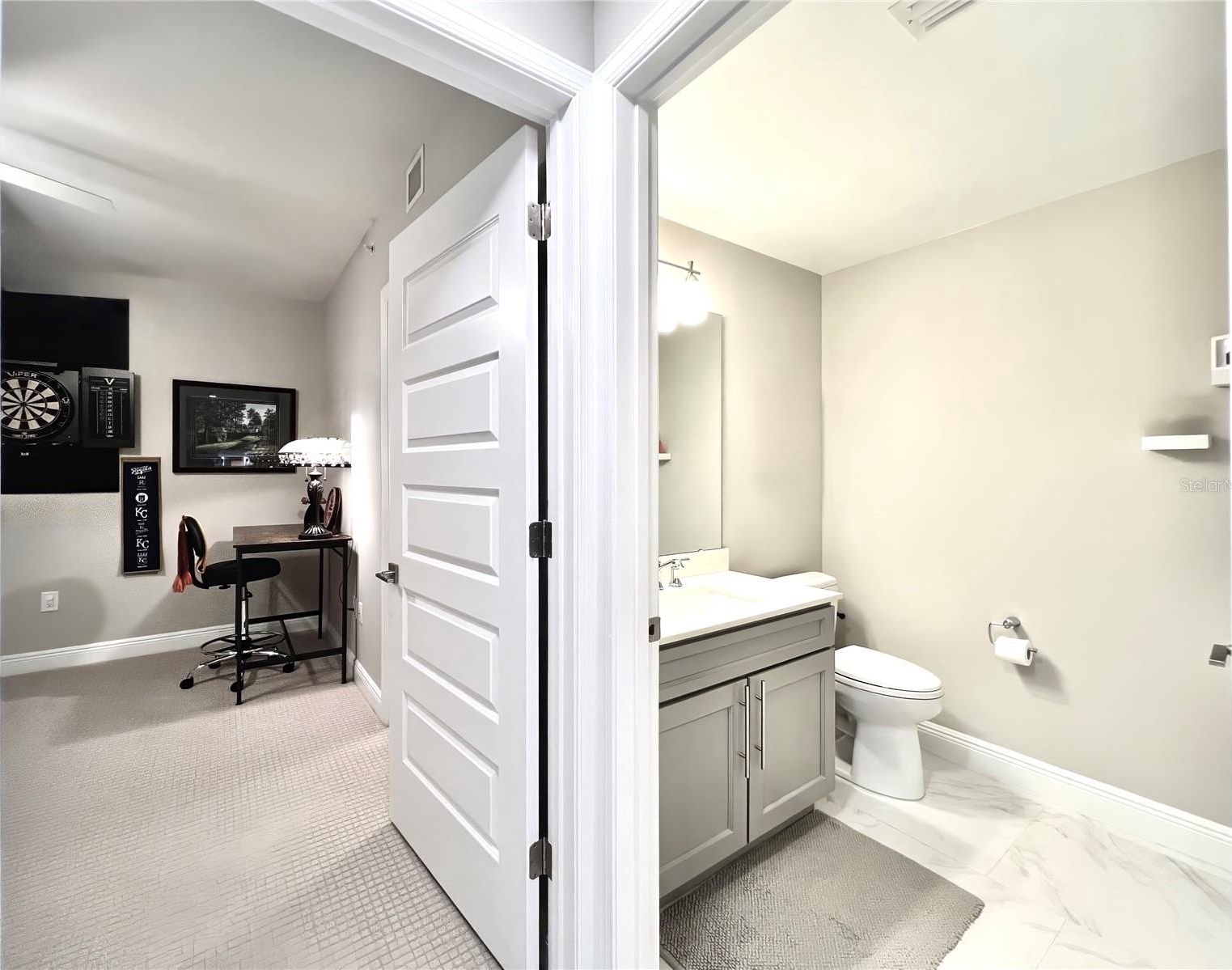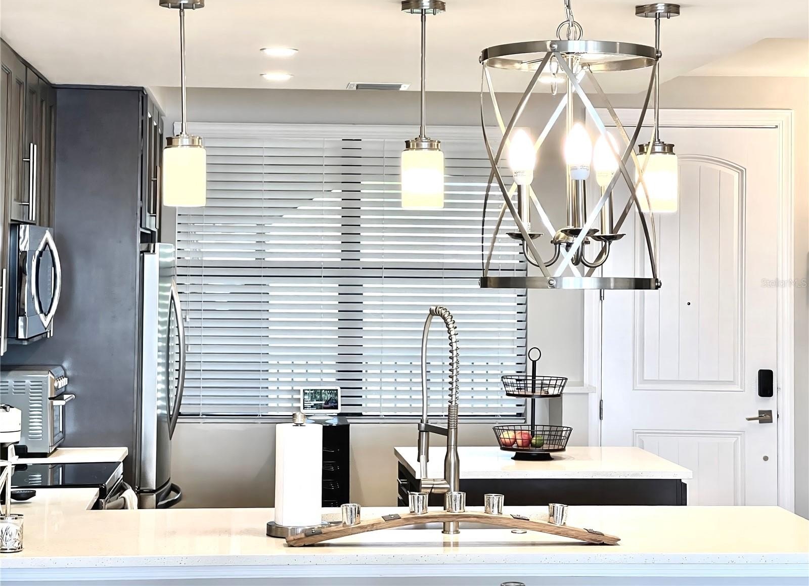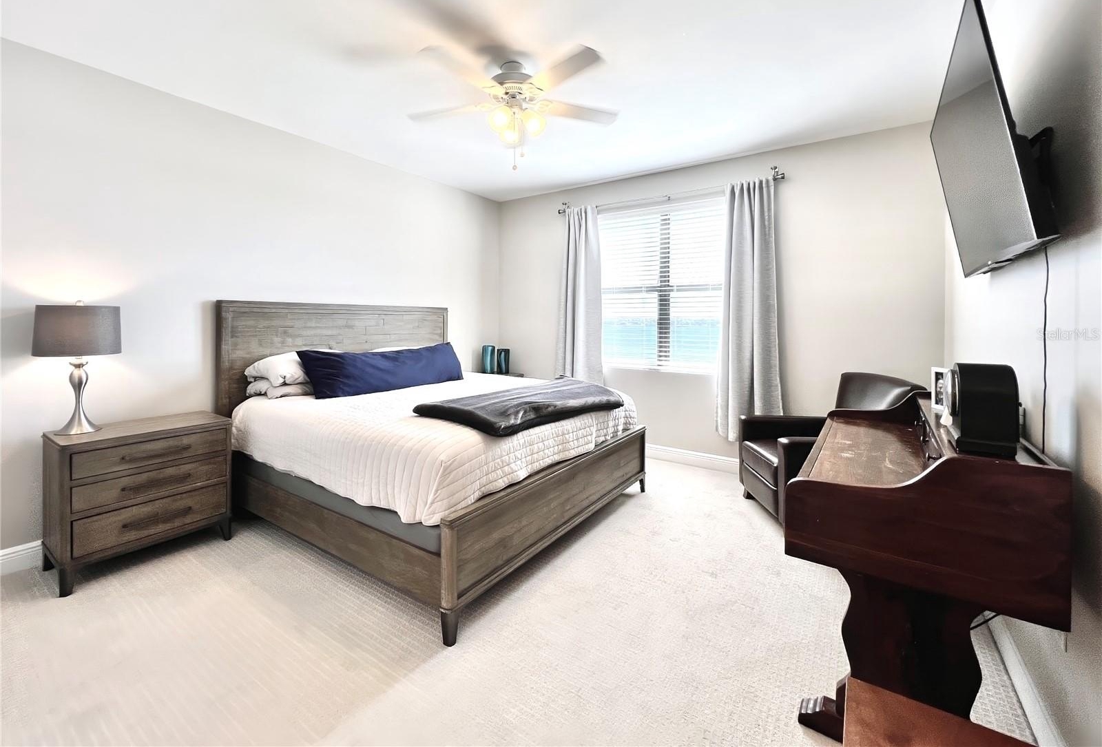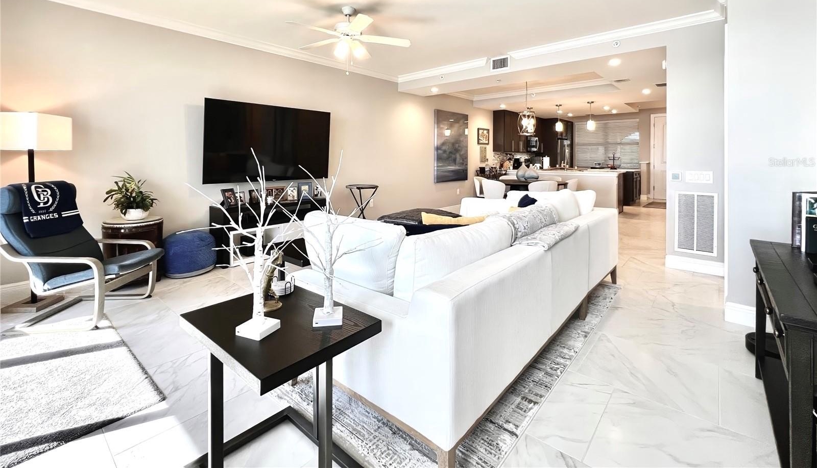 Welcome to the luxurious Siena condos neighboring the resort-style Bella Collina community. This gate-protected building is renown for high end amenities, and its prime location. Upon entry you're met with the glorious water view of Lake Siena immediately. This unit is situated on the fifth floor, offering an optimal vantage to fully appreciate the waterfront lifestyle at its best. This wide open floor plan allows the kitchen, living room, dining, and office nook to enjoy access to the view. From your sliding glass doors you may access your screened-in balcony space with chairs to sit out and feel the breeze. Your spacious kitchen boasts contemporary finishes. Quartz countertops, stainless steel appliances with tile backsplash, modern pendant light fixtures, ample cabinetry, nook for breakfast table seating, and a large kitchen island great for entertaining. A half bath services the living areas for guests, while both the large bedrooms enjoy private en-suite baths. All full baths feature tub. The plentiful windows throughout the home and primary bedroom let in abundant natural light, in addition to offering stunning panoramic views of the shimmering water outside. Your palatial primary bathroom features dual under-mount sinks, a tasteful walk-in shower with tile accents, and a separate soaking tub with backsplash for relaxation. Your dues provide access to world-class amenities including an impressive fitness center, a large outdoor pool backing the lake, with your internet, cable, water, and trash collection utilities included. Residents may access the resort style Club at Bella Collina, with exclusive restaurants and social events for the community and its members. Schedule a showing today! Don't Miss Our Video Tour!