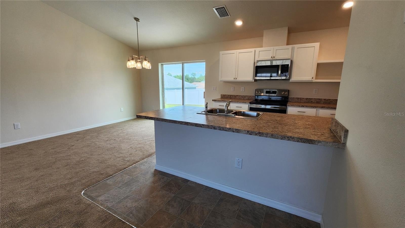 New construction in the heart of Citrus Springs! This 3-bedroom, 2-bath home offers 1,556 living square feet with an open-concept layout and vaulted ceilings that create a bright and spacious feel throughout the main living areas. The kitchen features solid wood cabinetry, stainless steel appliances, ample counter space, and a large breakfast bar overlooking the living and dining space, perfect for everyday living and entertaining.