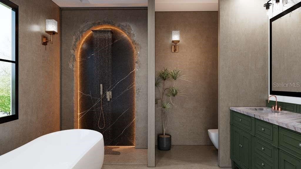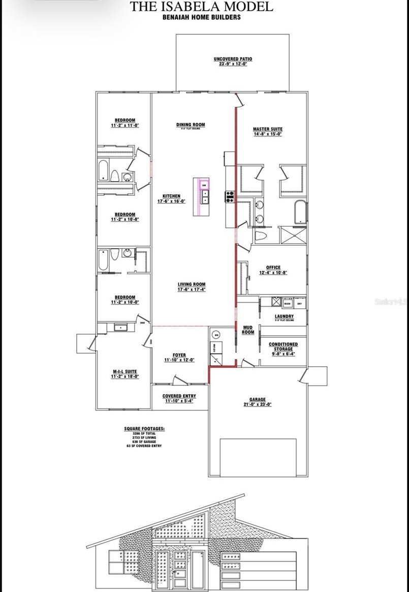 Pre-Construction. To be built. Welcome to the Isabela model, a modern, thoughtfully designed single-story home built for durability, flexibility, and long-term value. This impressive 5-bedroom, 3-bath residence with a 2-car garage includes a JADU / mother-in-law suite, making it ideal for multigenerational living or a live-in/rent-out opportunity. The home is constructed with commercial-grade cold-formed steel framing and a standing seam, high-quality metal roof with an estimated 50+ year life expectancy. Structurally, the home is fire-resistant, termite-resistant, water-damage resistant, and mold-resistant, offering enhanced durability and long-term peace of mind. Situated on a spacious 1-acre lot in Marion Oaks, Ocala, this property features NO HOA, providing freedom and flexibility for a variety of lifestyle needs. The open-concept floor plan is bright and functional. The primary suite, located on the right side of the home near the kitchen and dining area, offers abundant natural light, two walk-in closets, dual vanities with quartz countertops, a separate walk-in shower, and a soaking tub. Bedrooms two, three, and four are positioned on the left side of the home, while a flex room on the right side provides an ideal office or creative space. The gourmet kitchen is designed for entertaining and everyday living, featuring quartz countertops, stainless steel appliances, 42” solid wood cabinetry, a walk-in pantry, and a spacious center island. Interior features include 9-foot ceilings, luxury vinyl plank flooring throughout, upgraded lighting, 8-foot sliding glass doors, an 8-foot front entry door, and an 8-foot window entry, creating a bright, modern interior with a grand feel. Buyers will enjoy semi-custom design selections, including choices for tile, flooring, wall paneling, cabinetry, quartz countertops, and pavers, from the builder’s curated options. A 1-year builder warranty is included. The home is serviced by well water, eliminating monthly water bills and providing long-term savings. Cash or construction-to-permanent financing only, using the builder’s preferred lender.