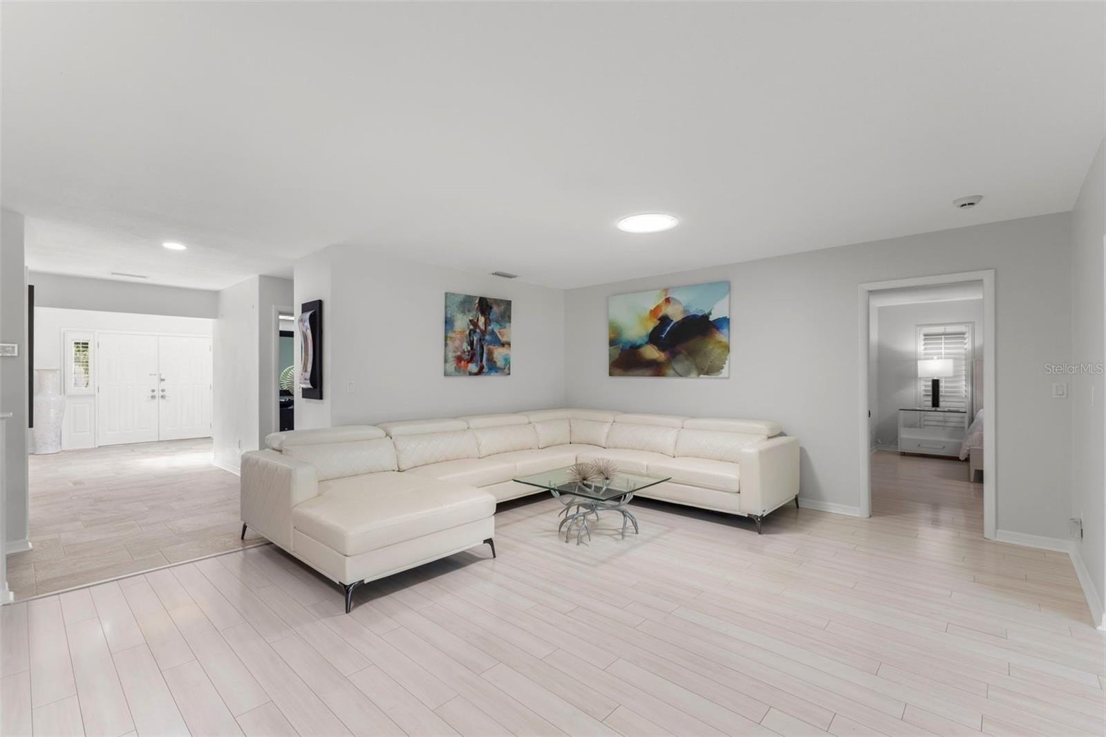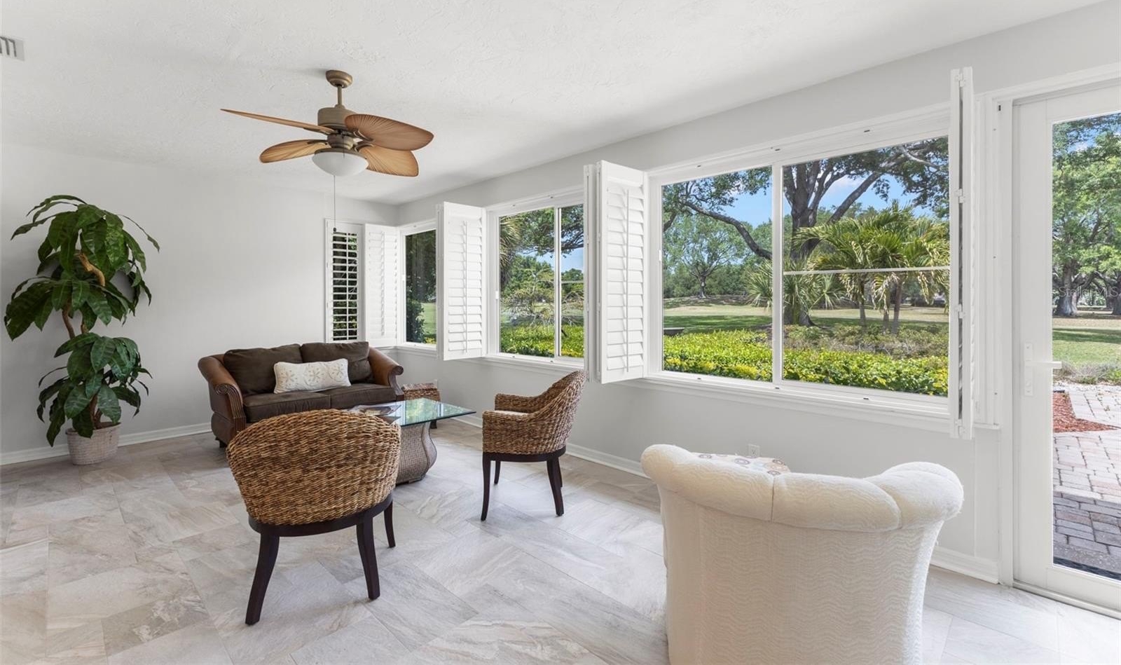 Beautifully maintained 3-bedroom, 3-bath home overlooking the 6th fairway at Countryside Country Club, perched on one of Clearwater’s highest points and located in an X flood zone. Enjoy peace of mind with hurricane shutters throughout, a Generac whole-home generator (2023), Trane A/C (2025), and a replaced driveway (2019). New roof being put on 2026. Inside, you’ll find updated luxury vinyl/laminate and ceramic tile flooring (2023), an inviting double-door entry and foyer, an updated kitchen with soft-close cabinetry and generous prep space, GE appliances, and a laundry room with storage just off the kitchen. The primary suite offers a walk-in closet, and two additional bedrooms include built-ins—one with a desk and drawers. The enclosed rear porch adds flexible living space with sweeping golf course views on the 6th fairway at the Countryside Golf Course, while the xeriscape backyard with pavers creates the perfect spot to relax and watch the golfers. Exceptional storage continues in the garage and attic with multiple access points and abundant cabinetry. Additional highlights well-fed sprinkler meter, water conditioning/filtration, gas water heater/dryer/range and generator, ADT security system (leased), and mini-split A/C units in the primary and front bedrooms. Roof 2013. Convenient to Tampa International Airport and Clearwater, St. Petersburg Airport, shopping, medical, worship, and just minutes to Dunedin Beach and Clearwater Beach. Furnishings are negotiable, and a 1957 Ford Fairlane is available for purchase separately.
