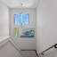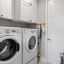 A spacious laundry room includes pedestal-mounted washer and dryer. Sliding glass doors from the living room lead to a balcony overlooking the pool. The third floor features the owner’s suite along with two additional bedrooms. The owner’s suite includes a custom walk-in closet system, and the home is equipped with a Nest thermostat and exterior cameras. Additional features include 8-foot interior doors on the upper floors and 5.5-inch baseboards throughout.