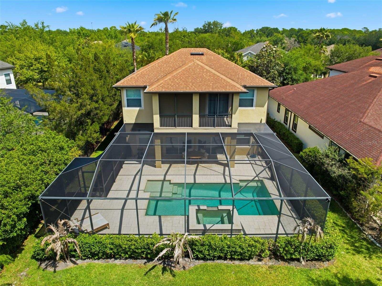 Step outside to your private backyard retreat featuring a beautiful custom in ground pool with hot tub, screened lanai, and no rear neighbors, with the property backing to peaceful conservation land for added privacy and a serene view.