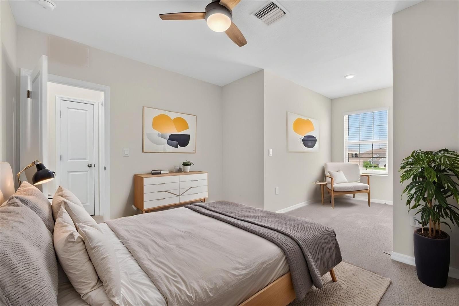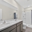 Upstairs, the spacious primary suite includes a walk-in closet, additional closet, and en-suite bath with dual sinks and walk-in shower. Secondary bedrooms offer flexible nook spaces ideal for an office or study area, with one featuring a walk-in closet. The laundry room is conveniently located upstairs and includes washer and dryer.