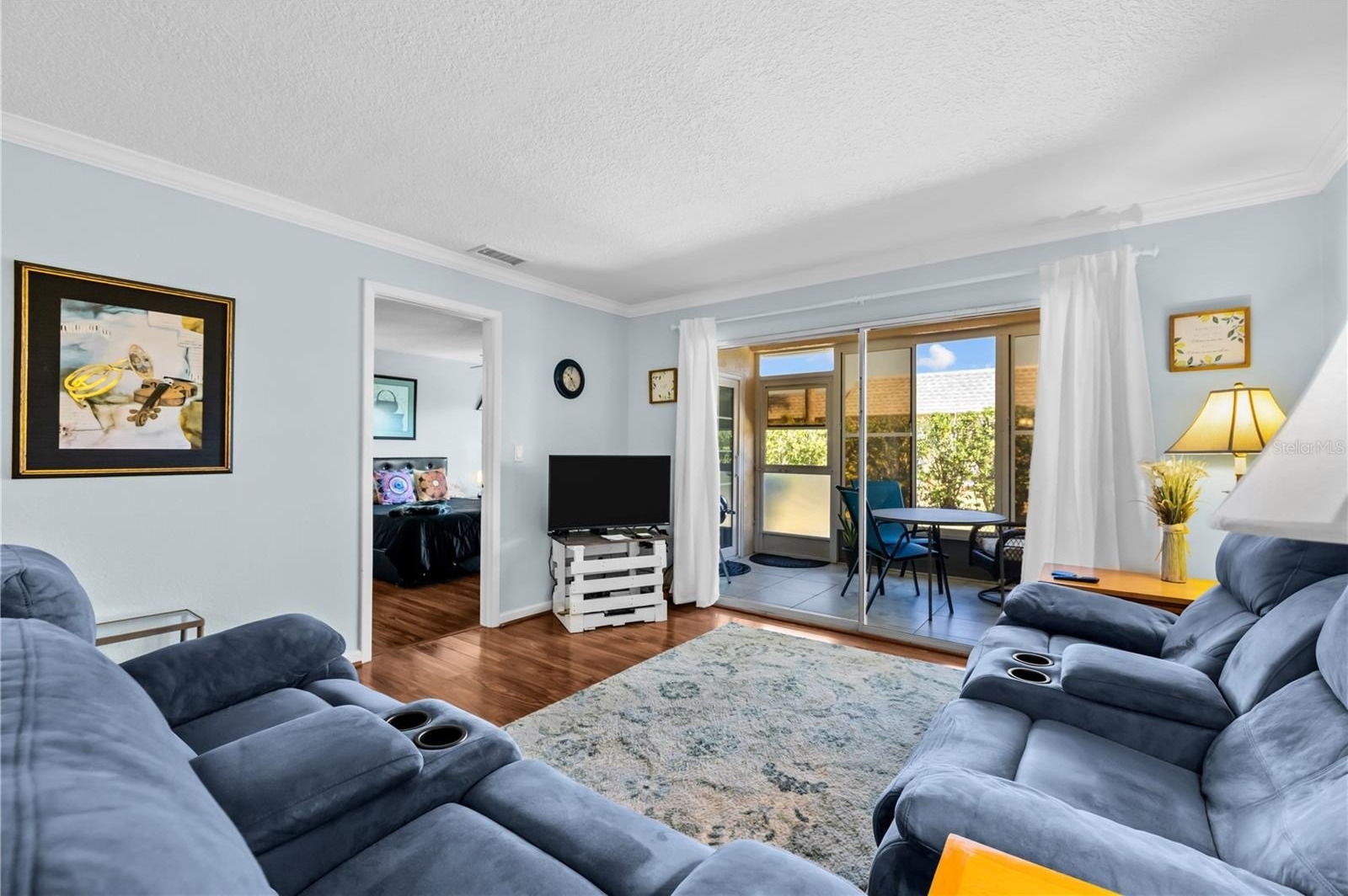 Welcome to 9609 Brassie Court—where comfort, style, and resort-style living come together in one of the area’s most desirable golf communities. This beautifully maintained 2-bedroom, 2-bathroom condo offers a bright and open floor plan designed for both everyday living and entertaining. The fully updated kitchen is a true highlight, featuring brand-new cabinets, modern countertops, and sleek stainless steel appliances perfect for anyone who loves to cook and gather. The home showcases rich wood flooring throughout, adding warmth and elegance to every room. The split-bedroom layout provides privacy, with one bedroom positioned near the front alongside a full bathroom, while the spacious primary suite is tucked away in the rear. The primary bedroom features a large walk-in closet and a peaceful retreat like feel. Step into the enclosed patio area ideal for relaxing year-round and enjoy your own outdoor space just beyond, perfect for morning coffee or evening unwinding. Additional storage is no issue here, as the unit includes a generously sized storage space capable of holding plenty of belongings. Residents enjoy access to exceptional amenities, including a clubhouse, a relaxing pool, and an Olympic-size heated pool for lap swimming. Stay active with the on-site fitness center and tennis courts, all within a golf cart-friendly community. The HOA provides incredible value, covering 24-hour guard-gated security, exterior maintenance, pest control, sewer, trash, and water offering peace of mind and convenience. This all-ages community also features covered parking for each unit, along with ample guest parking. The condo includes an in-unit washer and dryer, plus access to a nearby laundry facility if needed. Thoughtfully updated and meticulously cared for, this move-in ready condo is the perfect blend of low-maintenance living and resort-style amenities. Don’t miss the opportunity to call 9609 Brassie Court your new home!
