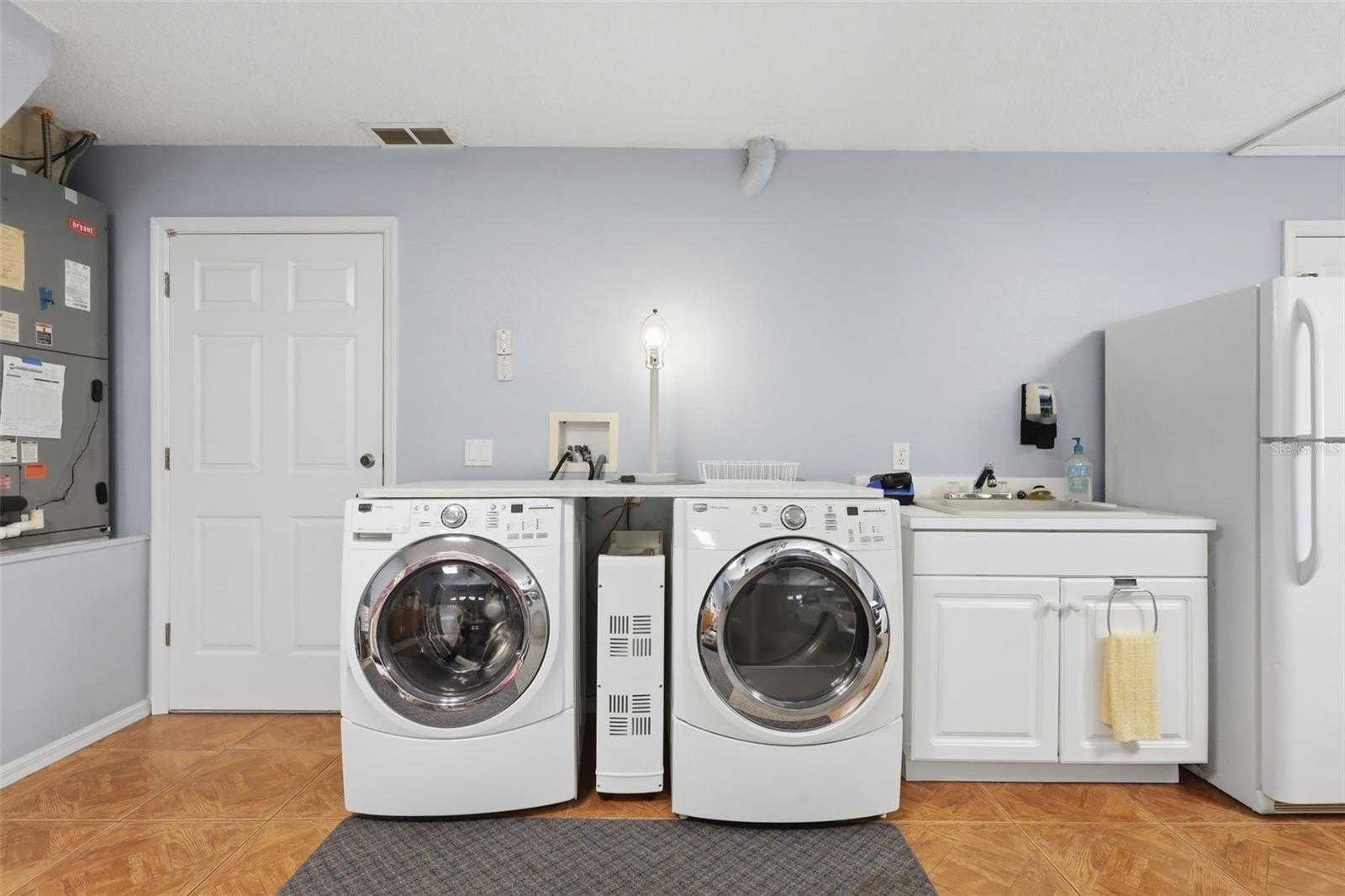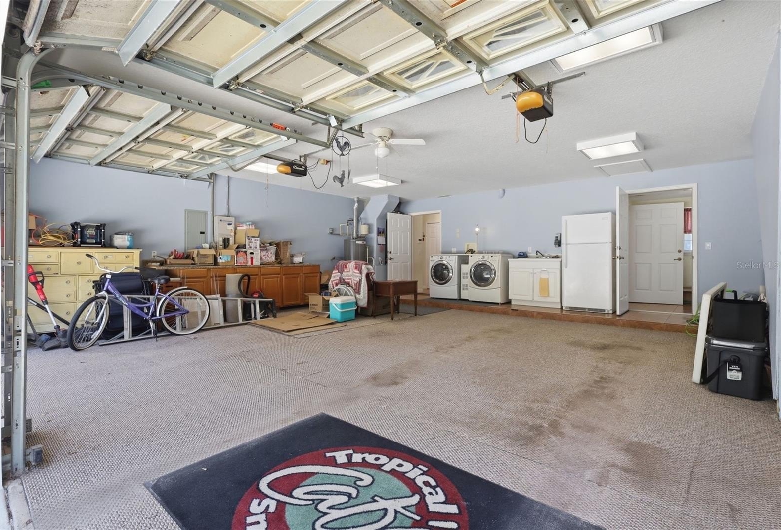The heated and air-conditioned 700 sq ft garage is a standout feature, complete with built-in storage cabinets—ideal for workshop space, hobbies, or additional storage.