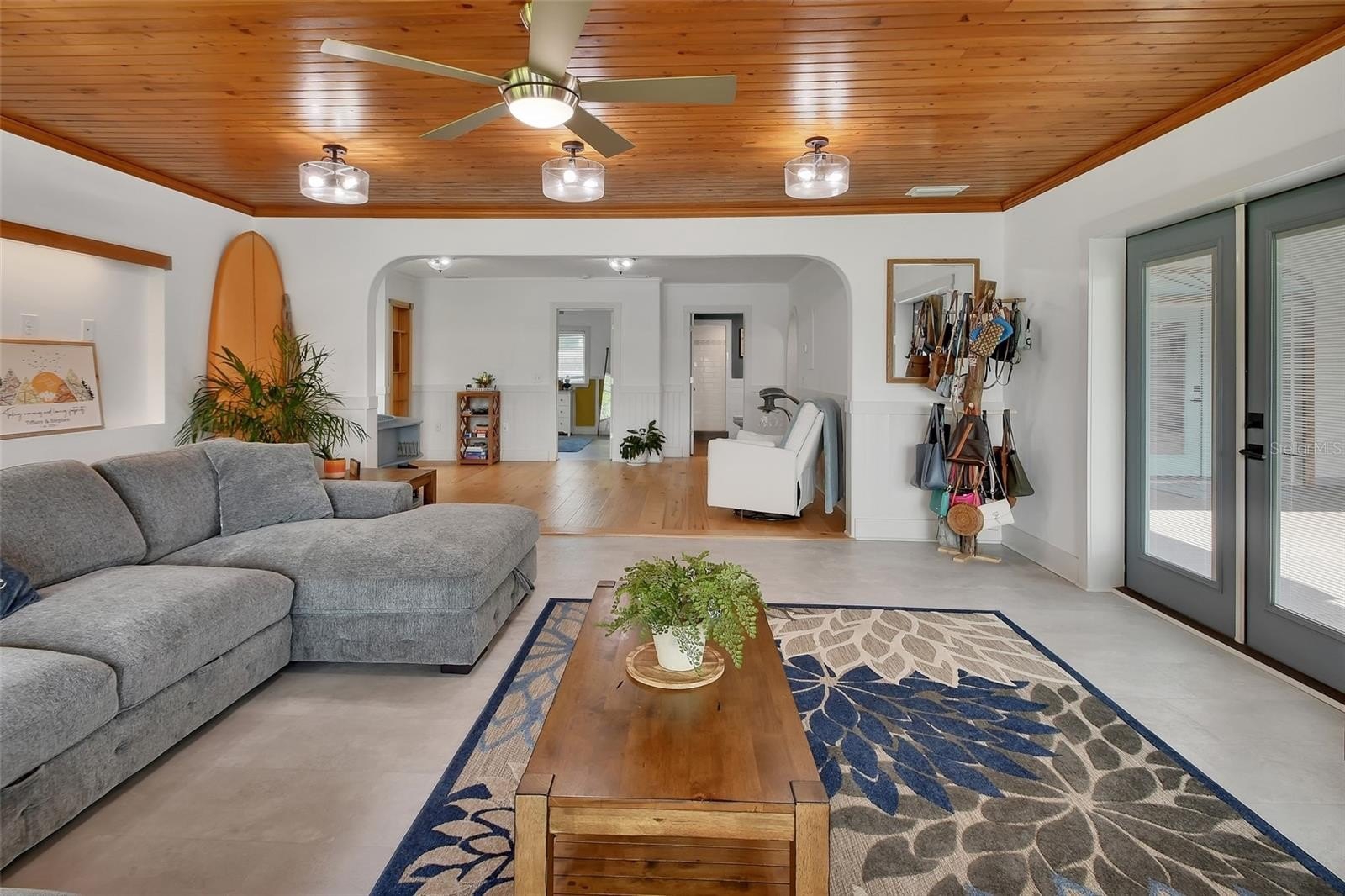 Private and serene, yet just minutes from downtown DeLand, Stetson University, and an easy drive to the beach, the location strikes the perfect balance. Step inside to panoramic views of Lake Ruby and soaring natural wood ceilings that instantly warm the space. The open-concept kitchen is designed for both everyday living and entertaining, featuring high-end stainless appliances, a gas range, and generous space to gather.