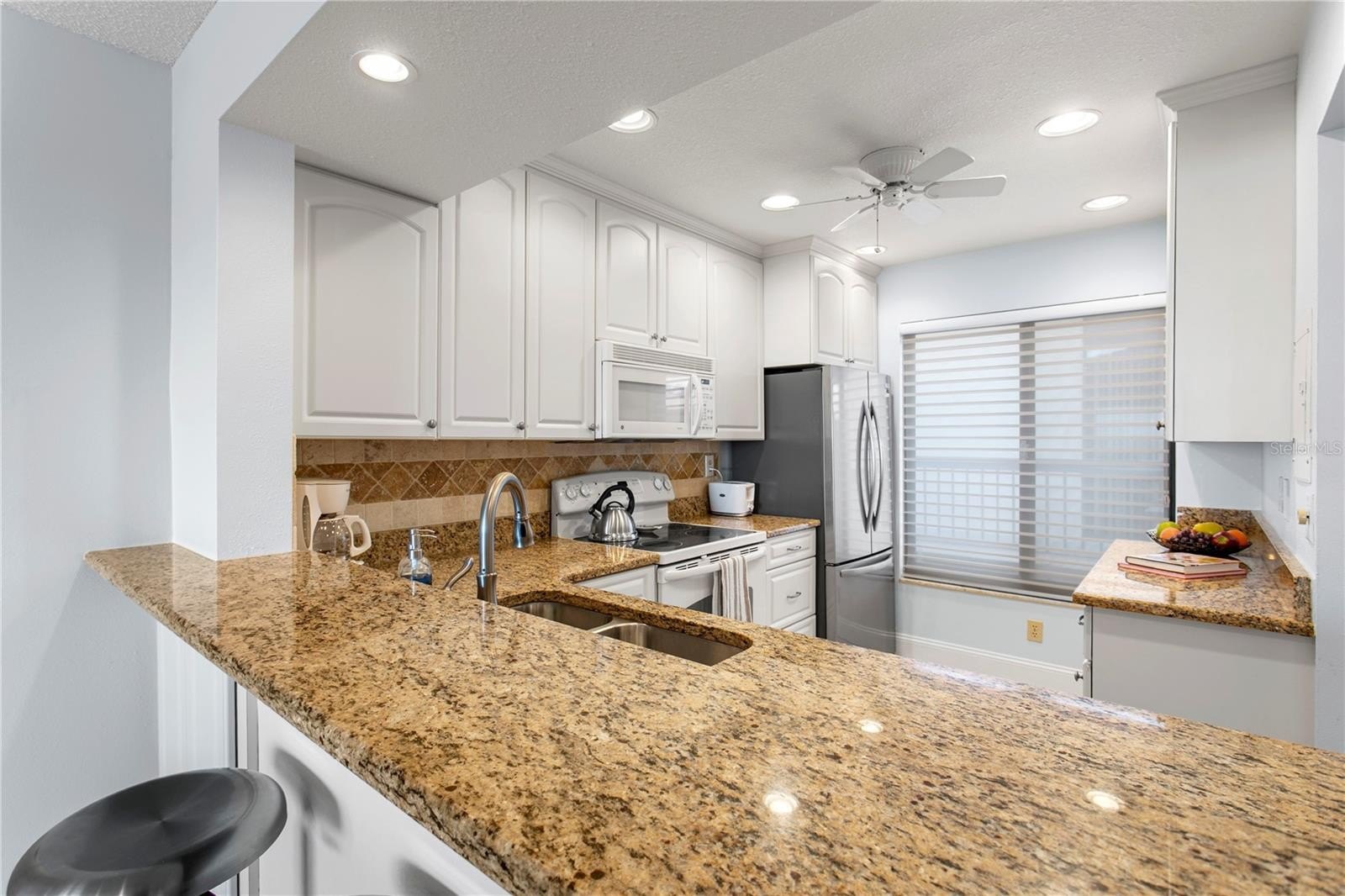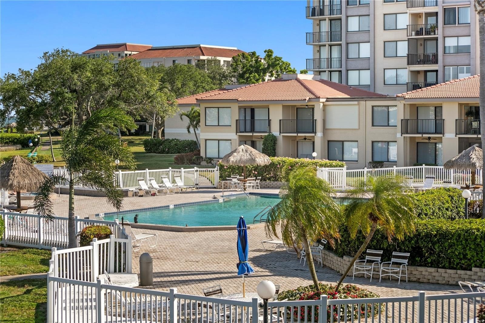 Step outside to your private veranda with new gemstone finishes - overlooking the bay and the waterfront pool and spa—an ideal setting for morning coffee, evening relaxation, and year-round enjoyment of Florida’s coastal climate. A covered parking space and private storage room located just steps from the front door add everyday convenience.